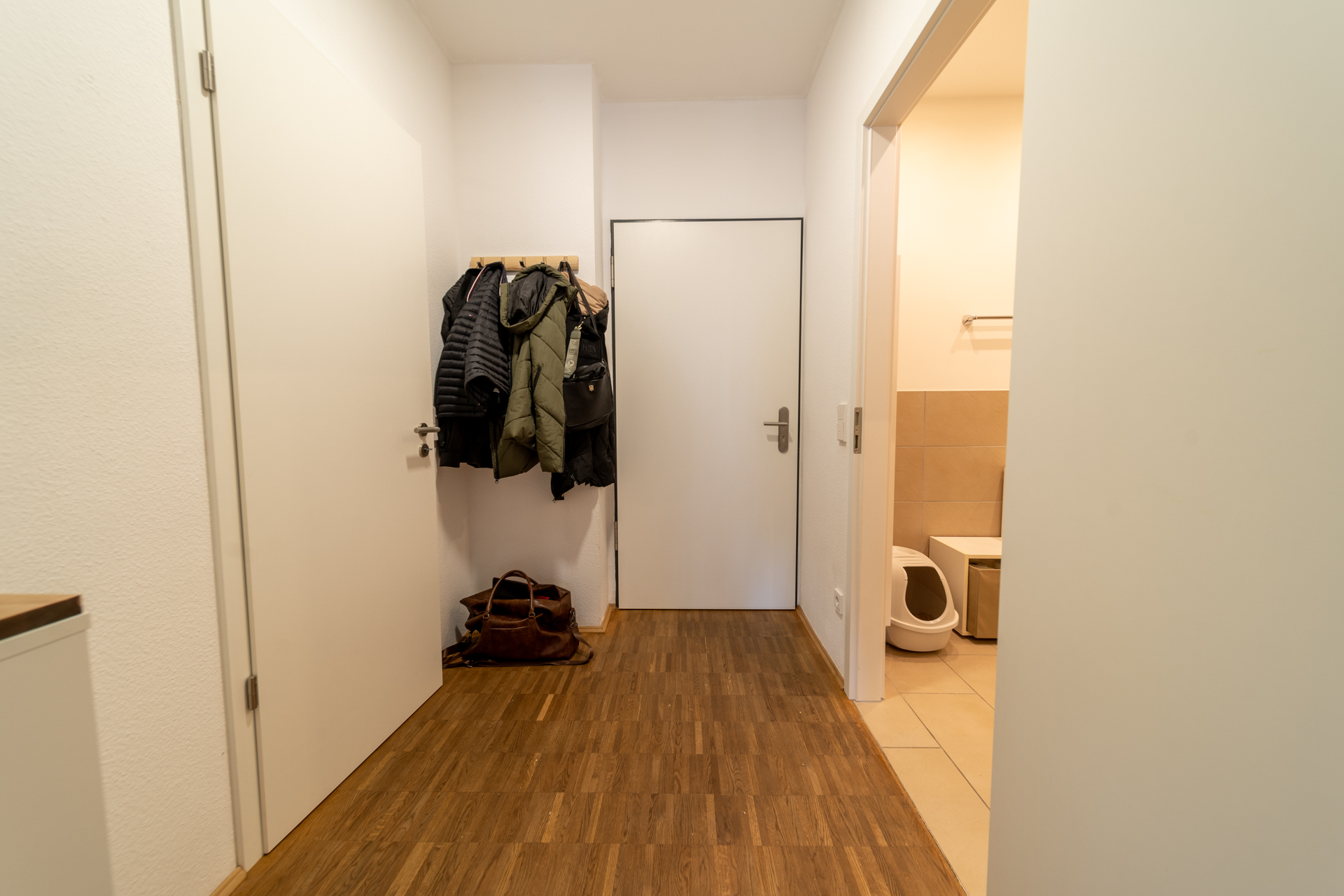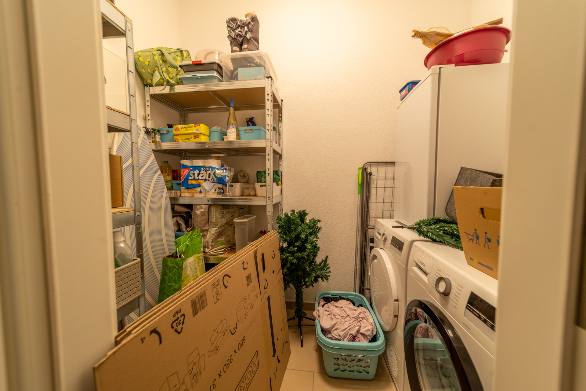 Eine praktische Abstellkammer sorgt für zusätzlichen Stauraum und komplettiert das durchdachte Raumkonzept dieser Wohnung. Hier finden Sie Anschlüsse für Waschmaschine und Trockner. Für behagliche Wärme sorgt die moderne Fußbodenheizung, die über eine nachhaltige Pelletzentralheizung gesteuert wird – effizient und umweltfreundlich zugleich.
