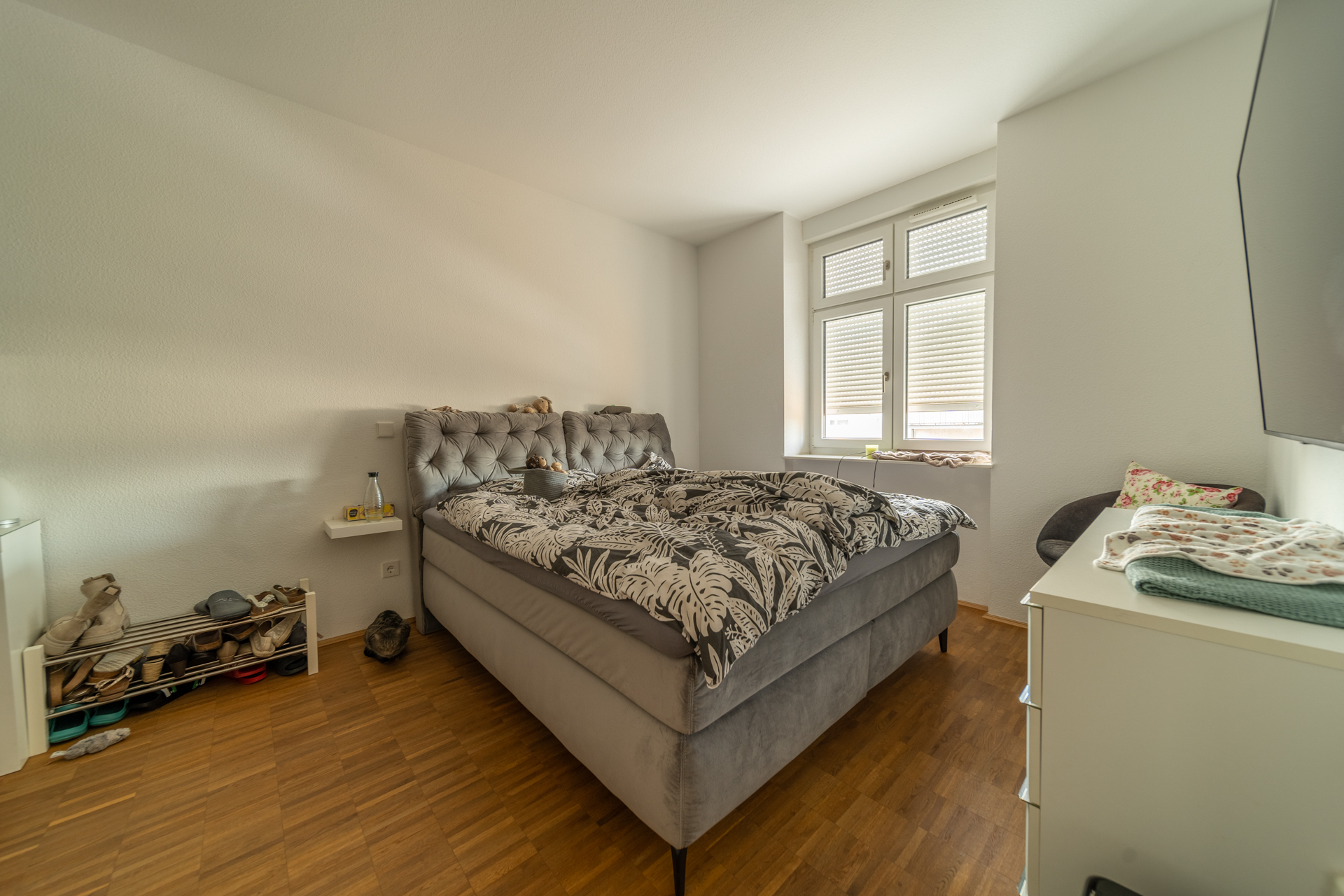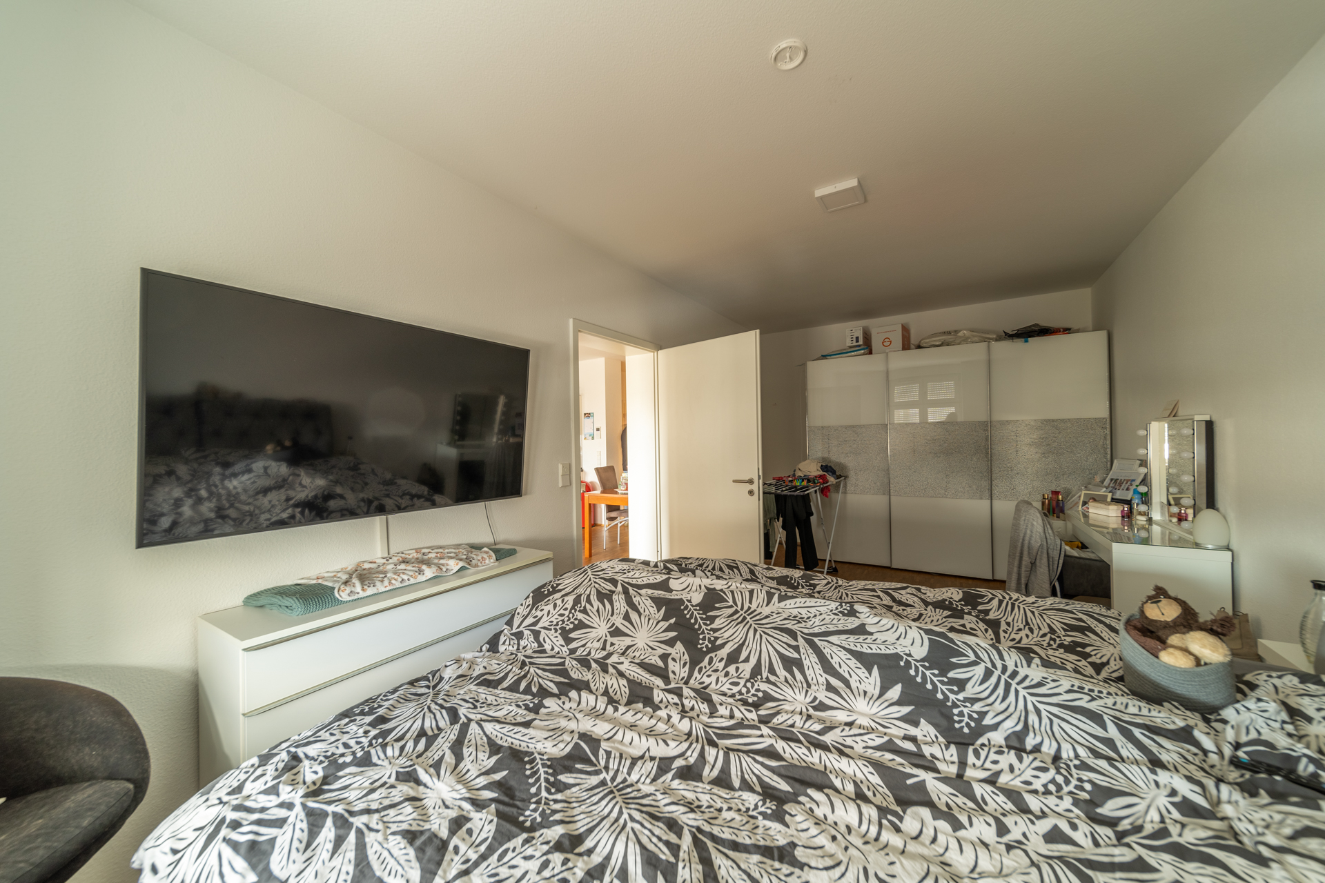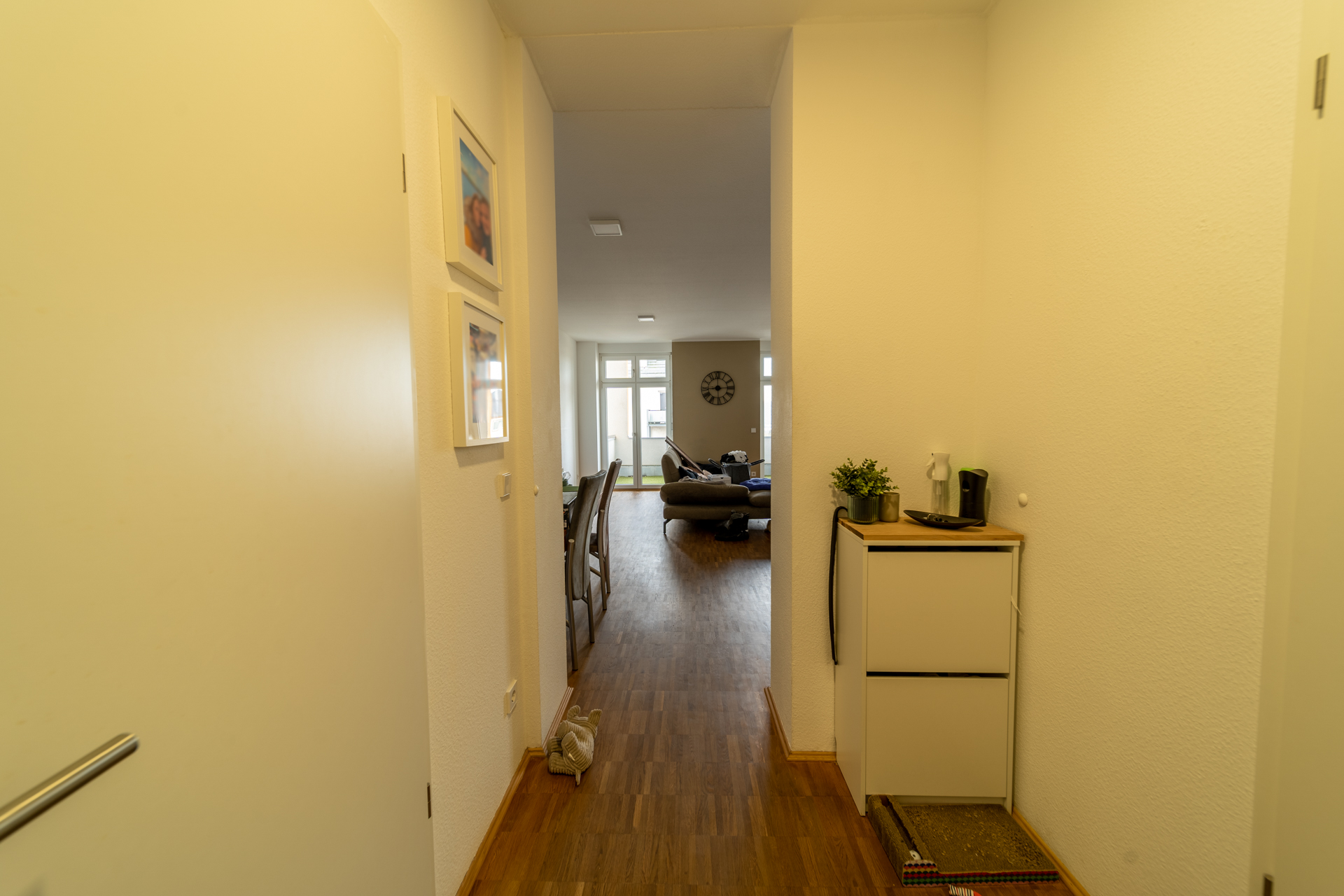 Das Herzstück der knapp 74 m2 großen Wohnung ist das Wohnzimmer mit offener Wohnküche. Von hier aus gelangen Sie direkt auf die überdachte Loggia, die Ihnen einen Rückzugsort im Freien bietet – ideal, um den Tag entspannt ausklingen zu lassen.