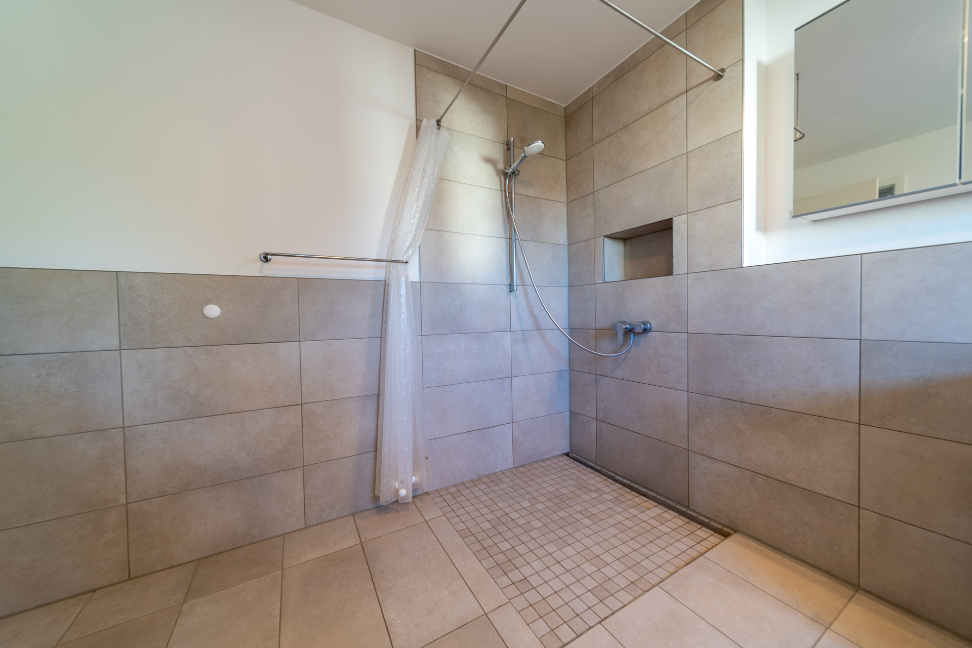 Alle Zugänge zum Haus sind für Kinderwägen und Rollstuhlfahrer problemlos, die Duschen ebenerdig gefliest und Türen zu den Wohn- und Schlafräumen sowie Bädern sind mindestens 100 cm breit. Die Treppen wurden mit verlängerten Handläufen versehen. Für weitere mögliche beleuchtete Handläufe sind Anschlüsse vorbereitet.