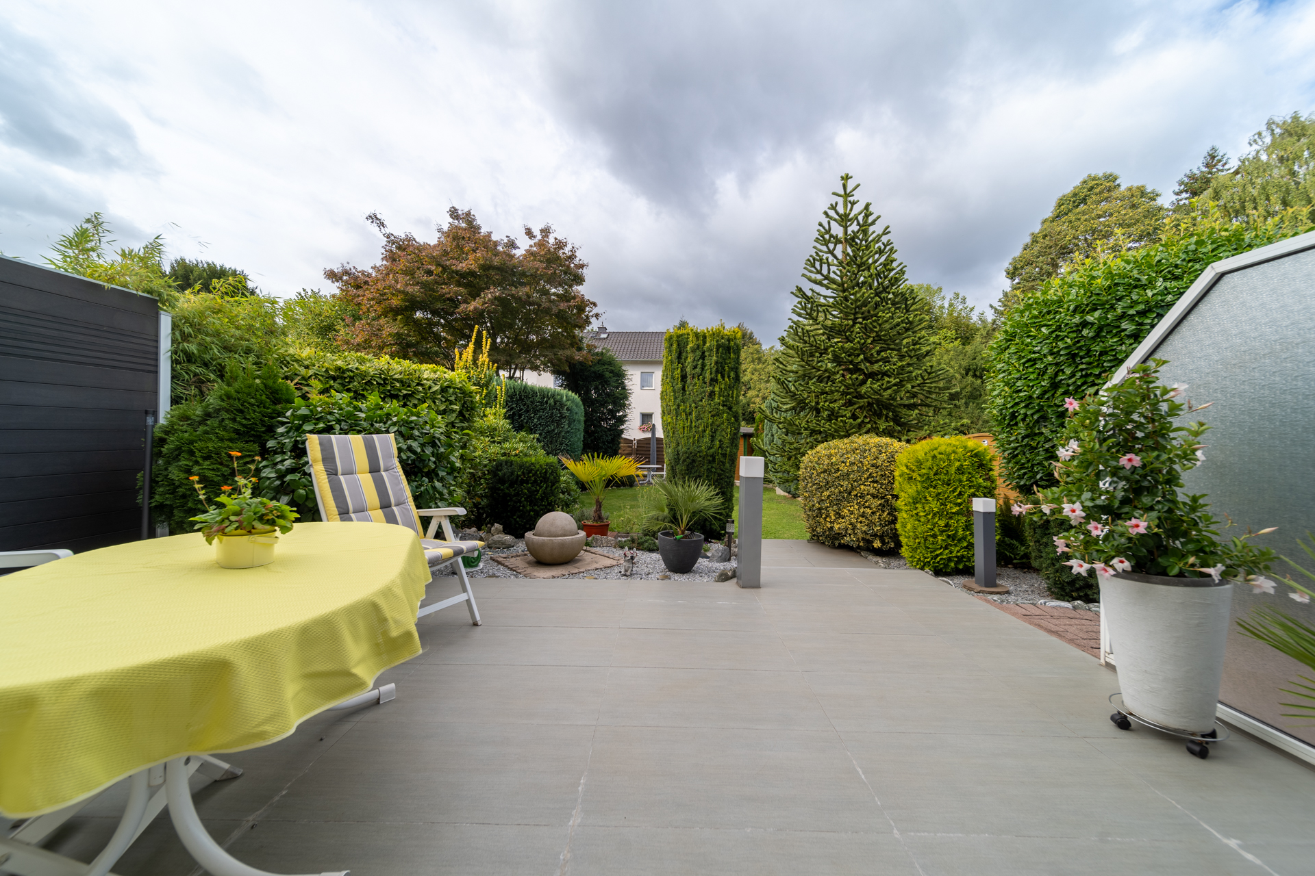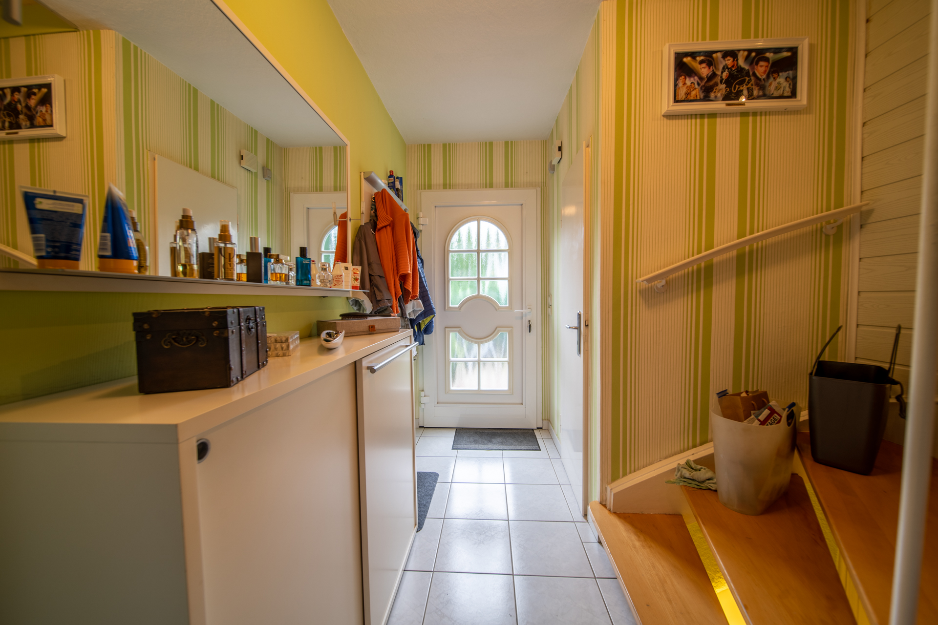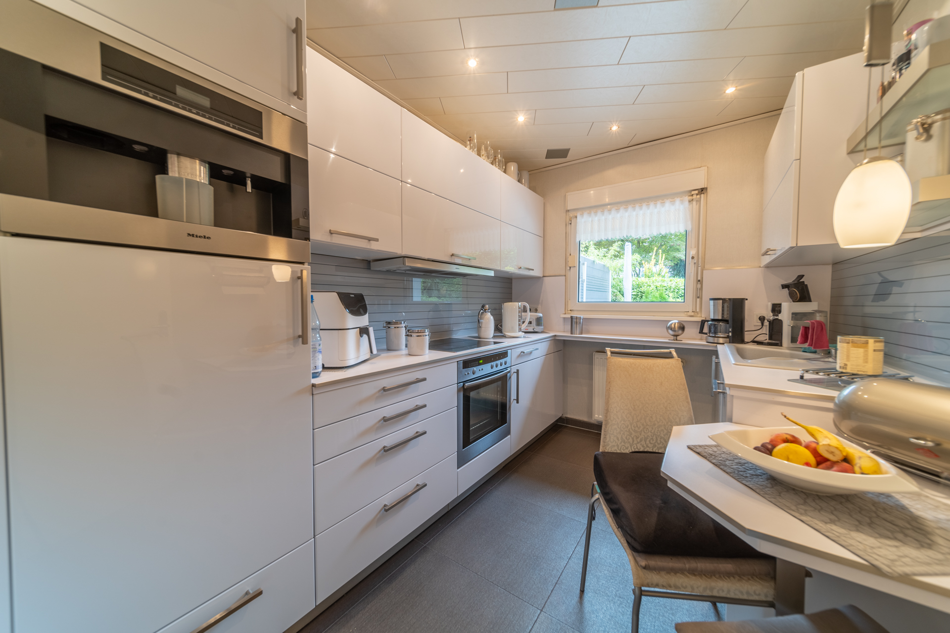 Im Erdgeschoss erwartet Sie ein großzügiger Wohn- und Essbereich, der das Herzstück des Hauses bildet. Hier hat die ganze Familie Platz, um gemeinsam Zeit zu verbringen. Die angrenzende Küche ermöglicht kurze Wege und eine offene Verbindung zum Geschehen. Von Wohnzimmer und Essbereich gelangen Sie direkt auf die geflieste Terrasse – perfekt für Mahlzeiten im Freien oder entspannte Nachmittage. Der schön angelegte Garten mit Südwestausrichtung bietet Kindern viel Platz zum Spielen und lädt Erwachsene gleichermaßen zum Entspannen ein. Eine Gartenhütte ergänzt das Familienparadies praktisch und charmant.
