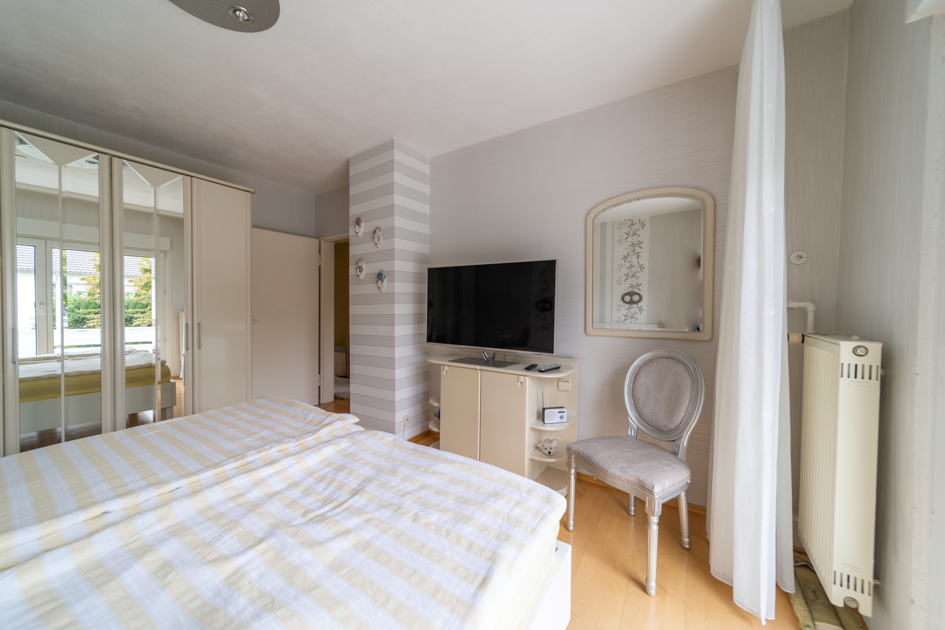 Das Tageslichtbad mit Duschwanne sorgt für einen guten Start in den Tag. Besonders schön: Ein Schlafzimmer verfügt über einen Balkon mit Blick in den grünen Garten.