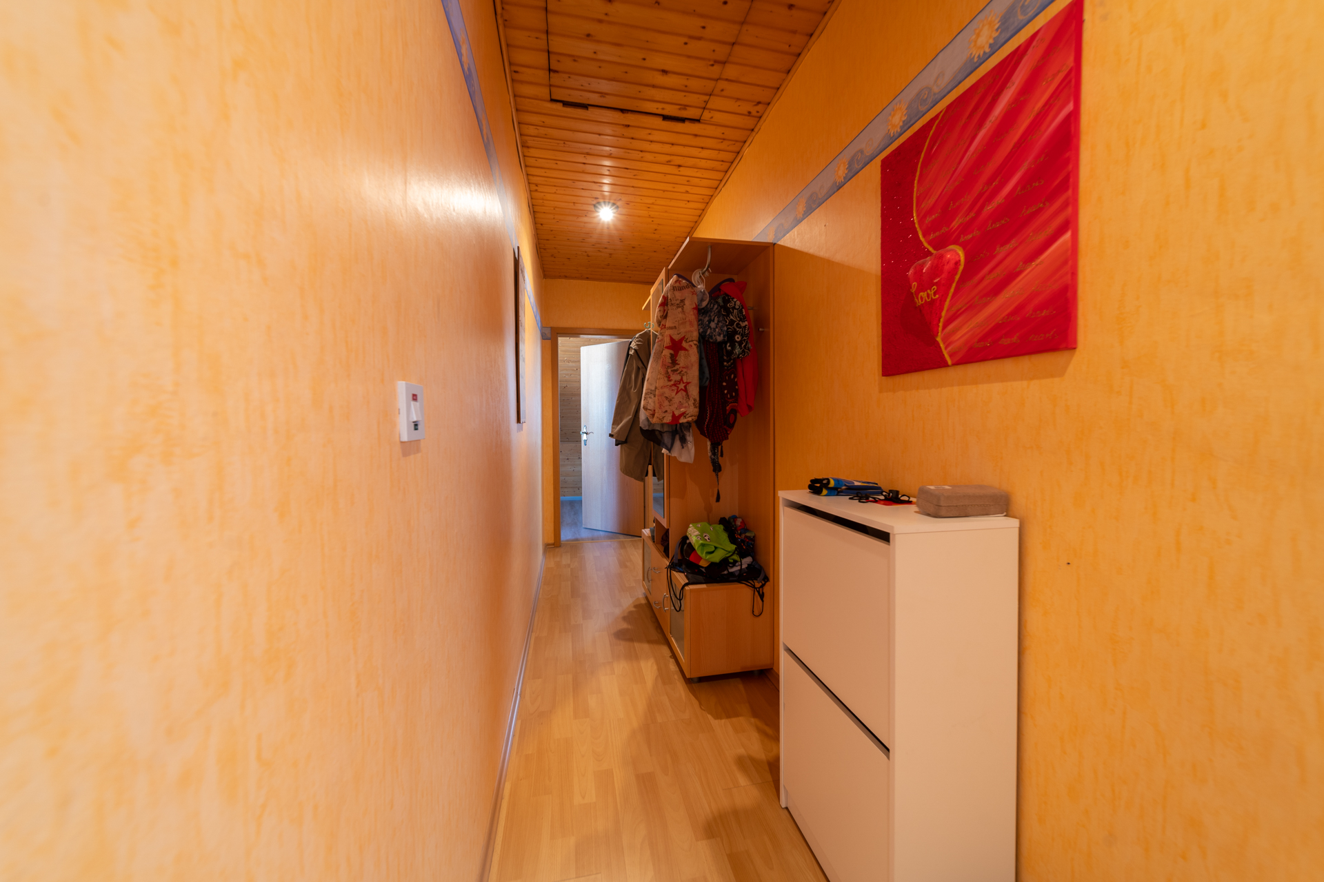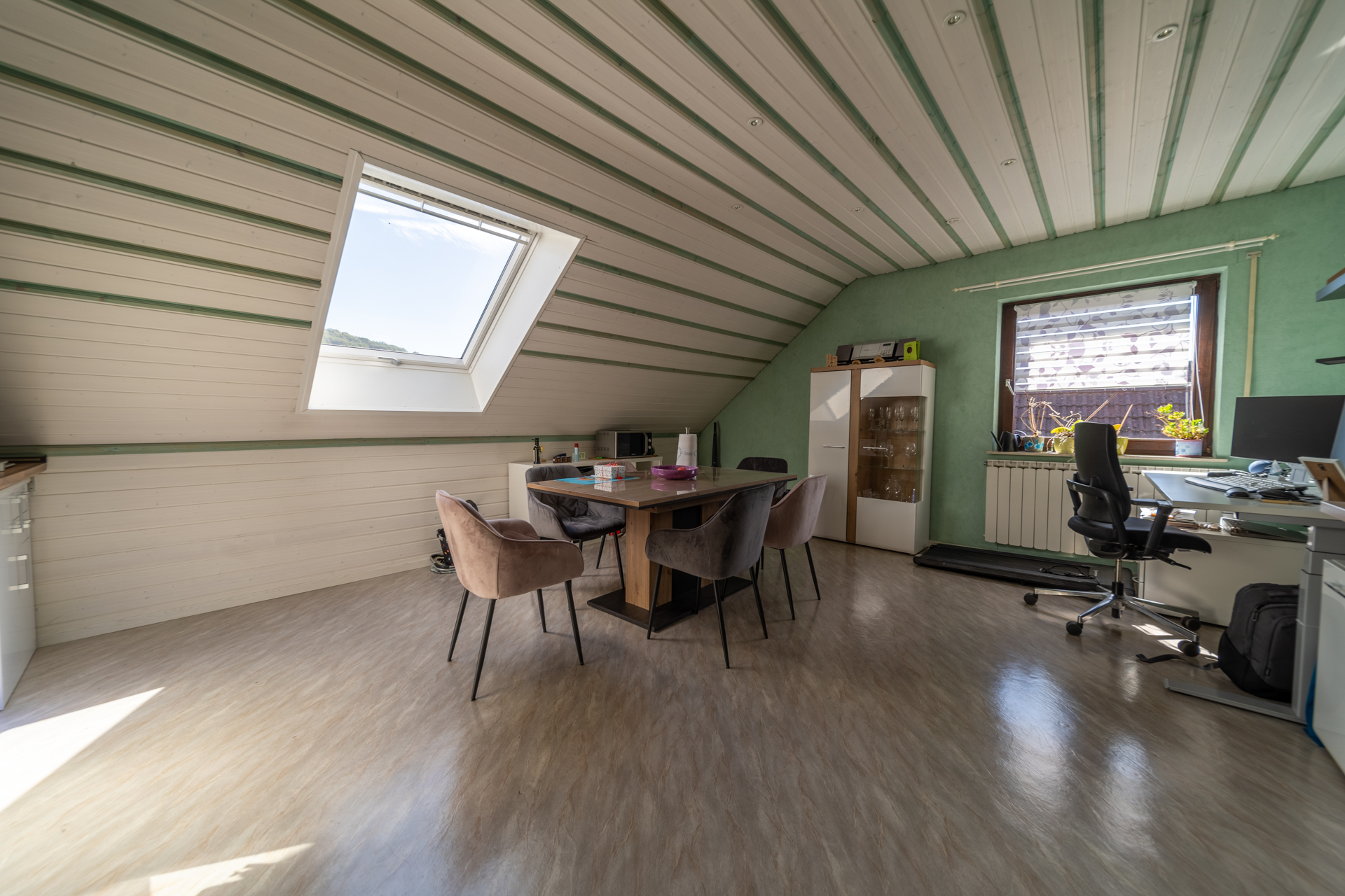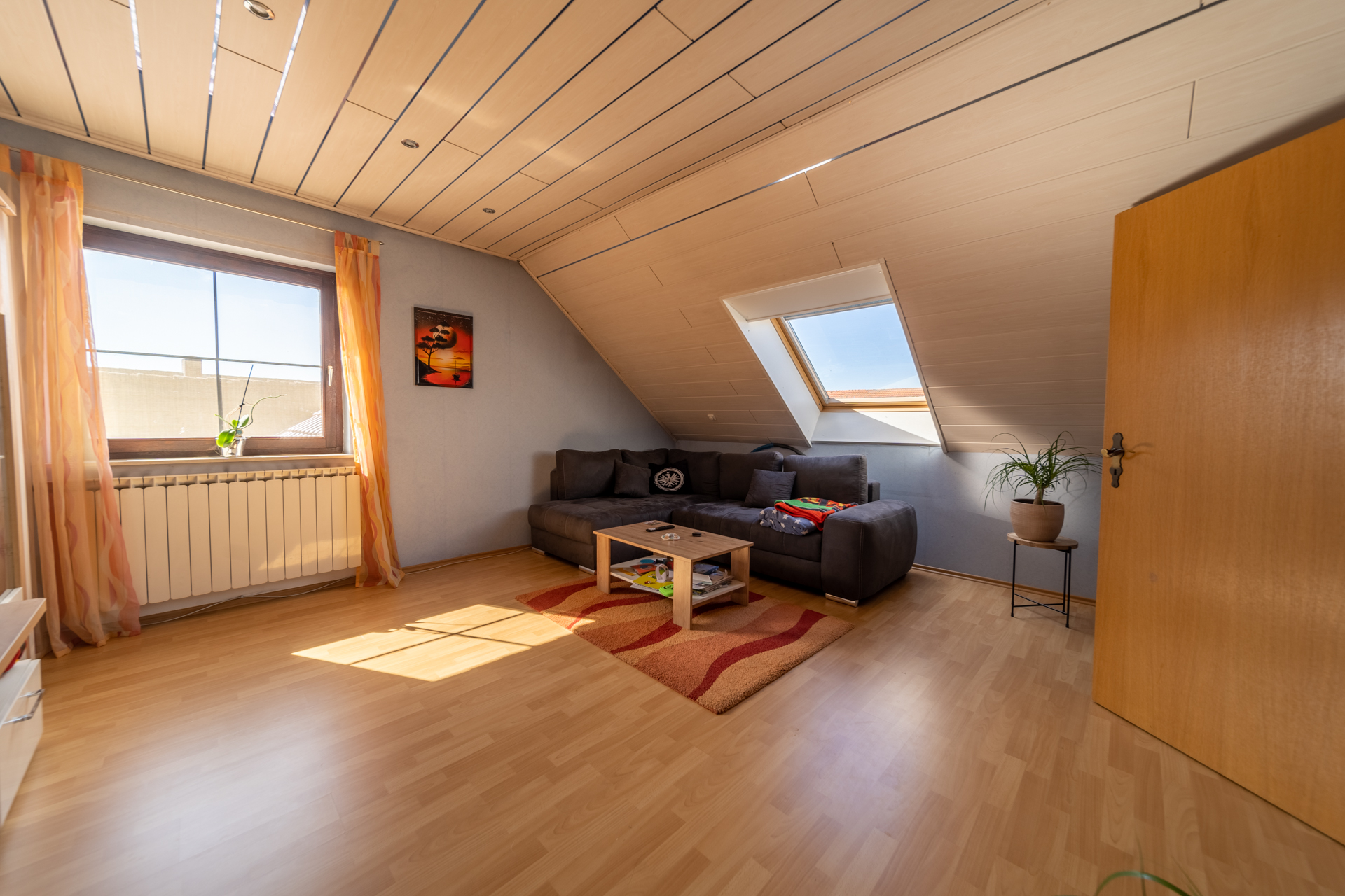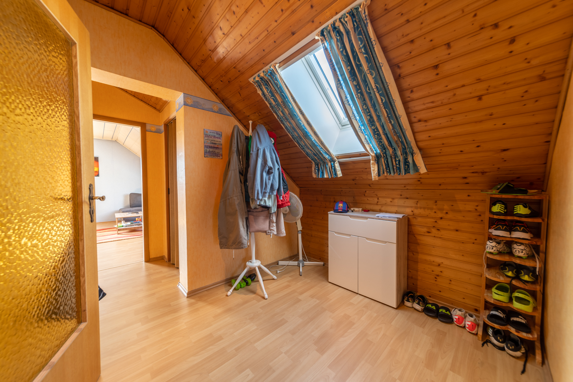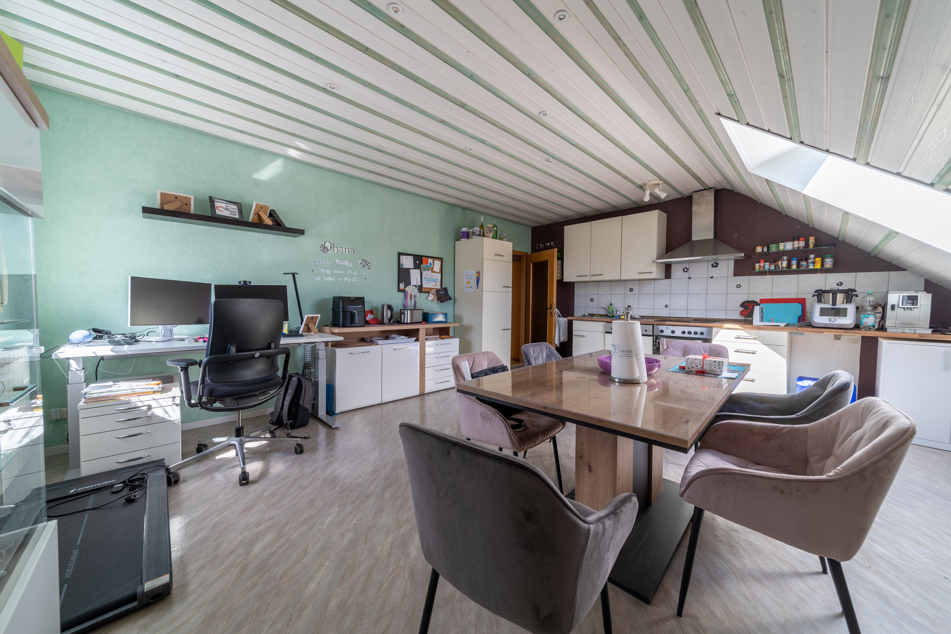 Im Obergeschoss befindet sich eine rund 112 m² große Wohnung, die den Mittelpunkt des Familienlebens bildet.