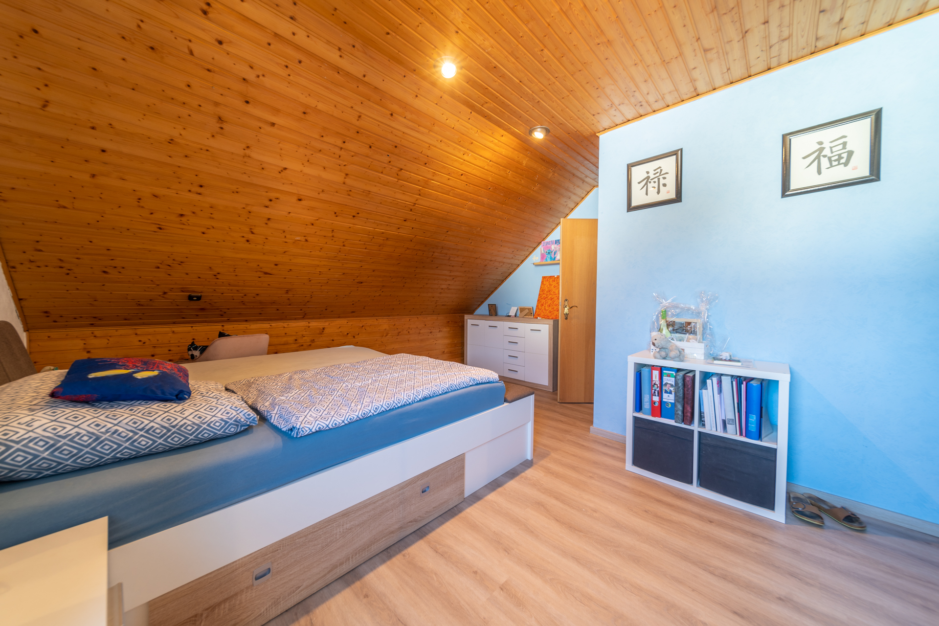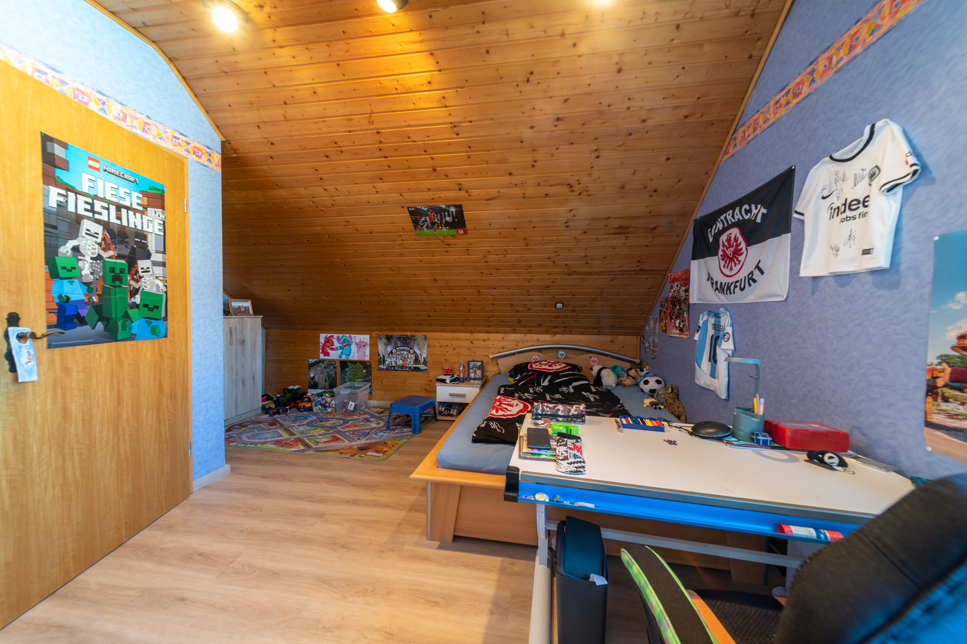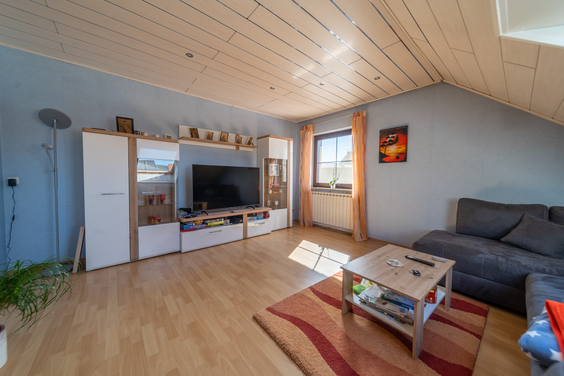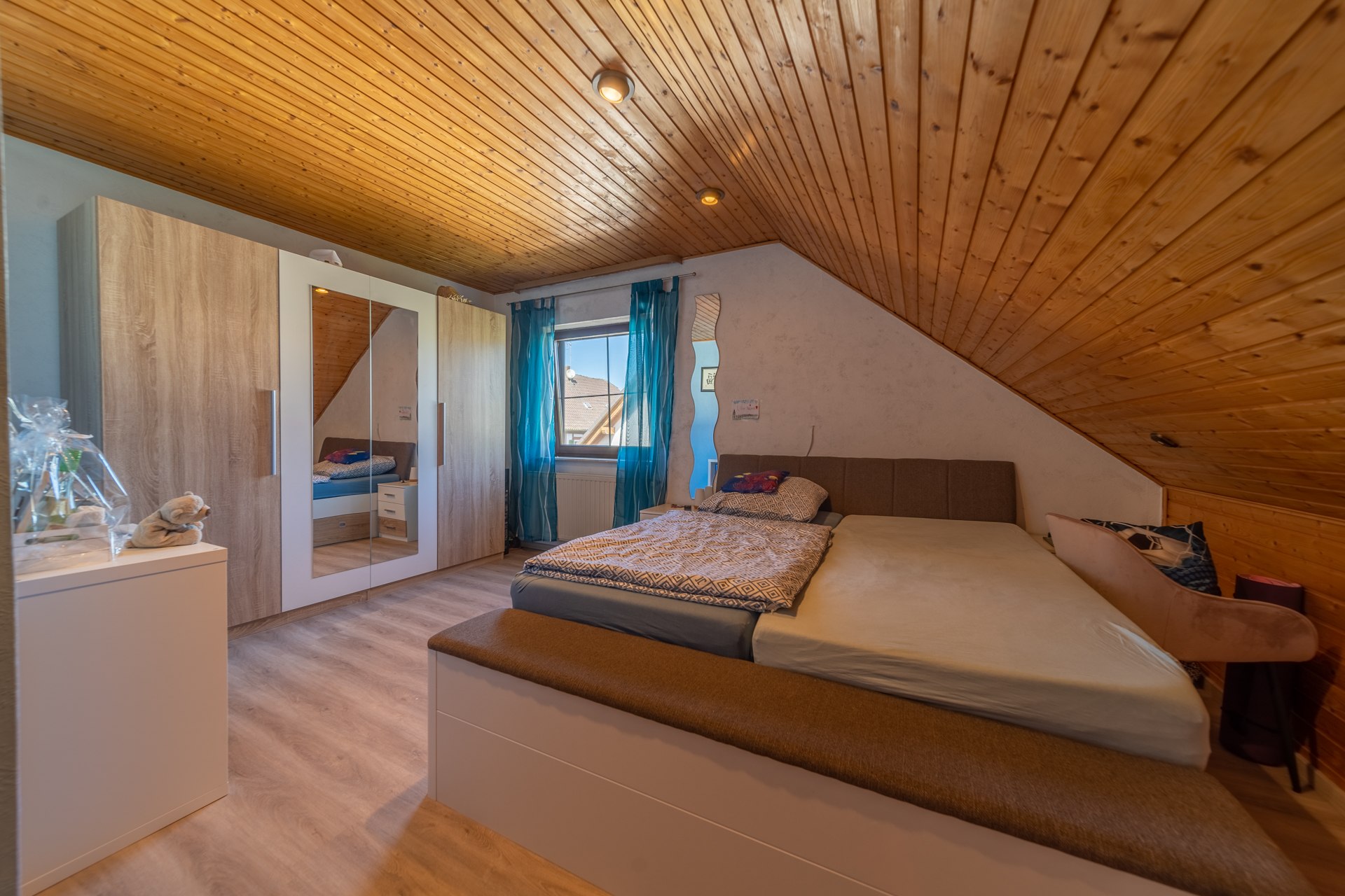 Im Obergeschoss befindet sich eine rund 112 m² große Wohnung, die den Mittelpunkt des Familienlebens bildet.