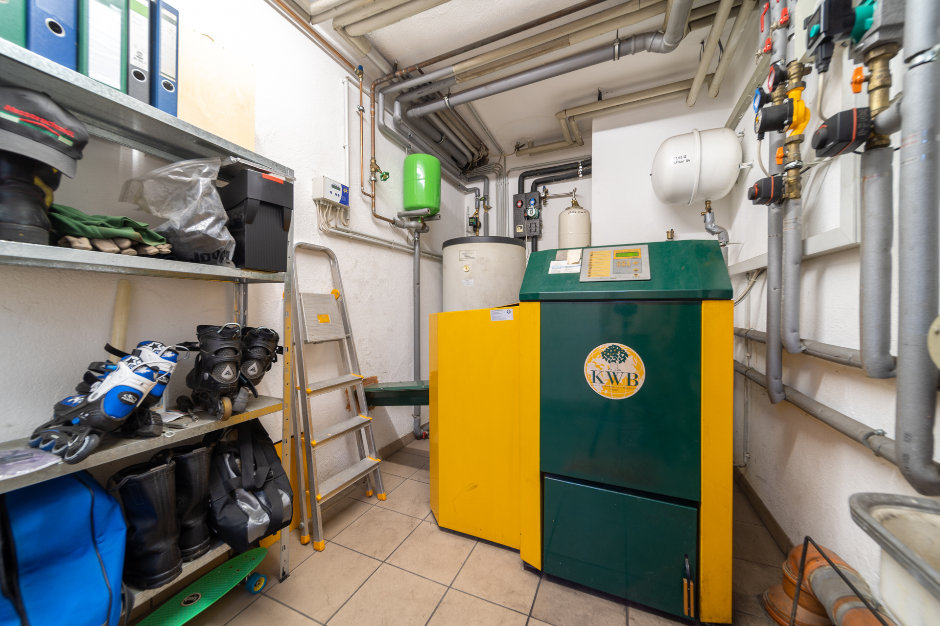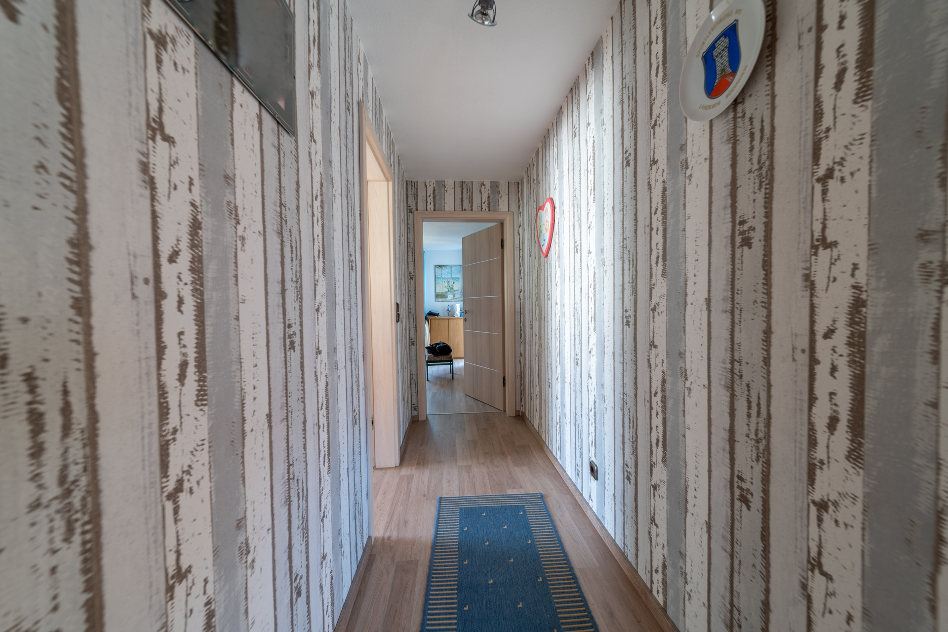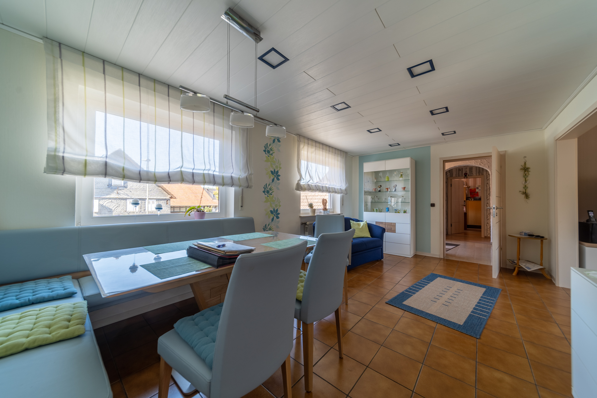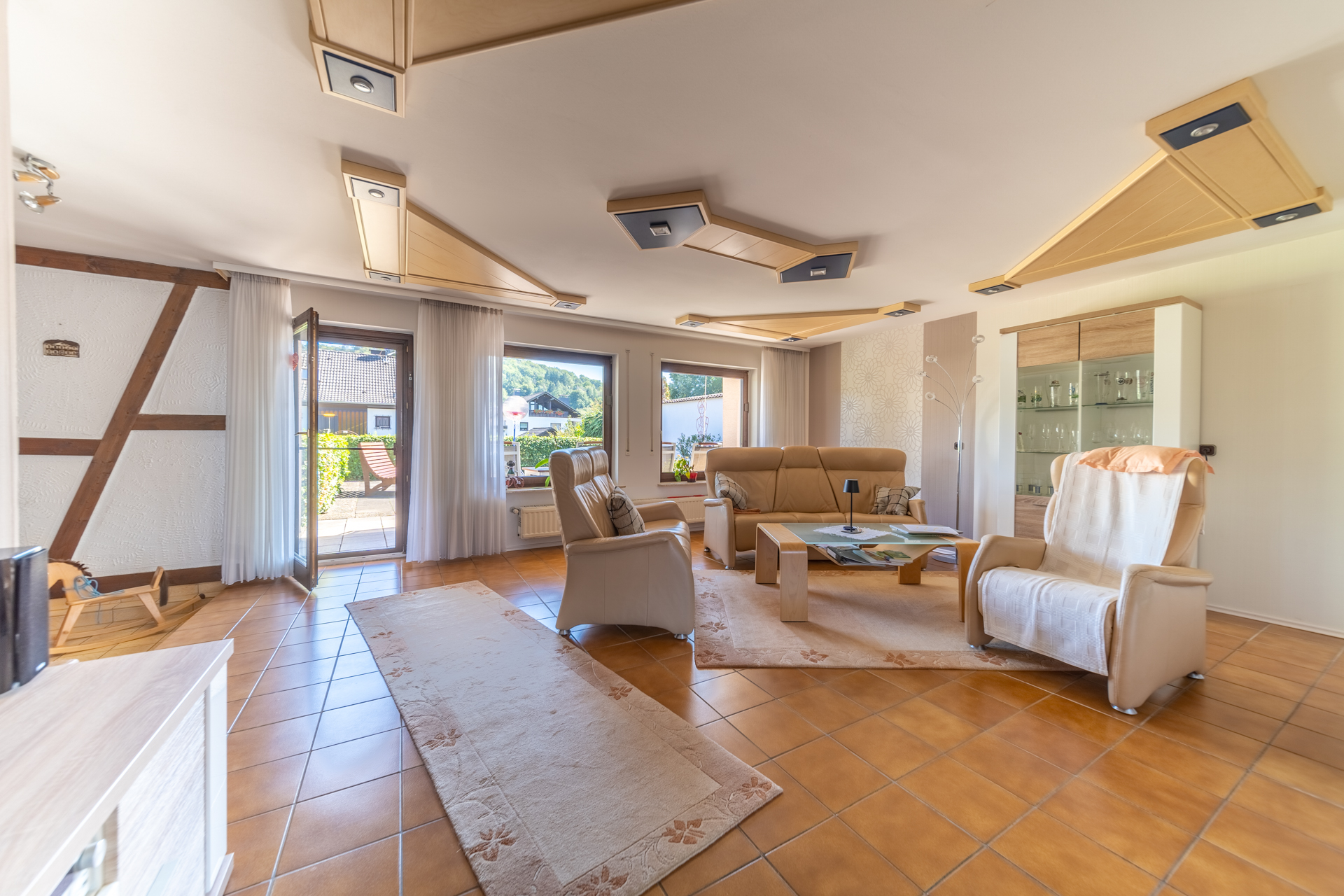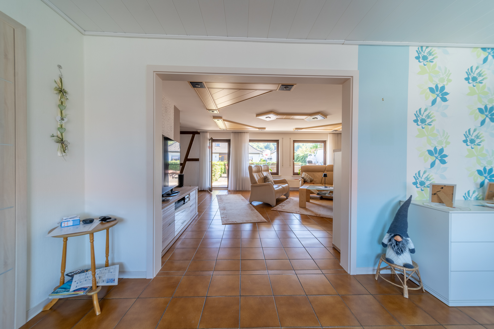 Im Obergeschoss befindet sich eine rund 112 m² große Wohnung, die den Mittelpunkt des Familienlebens bildet.