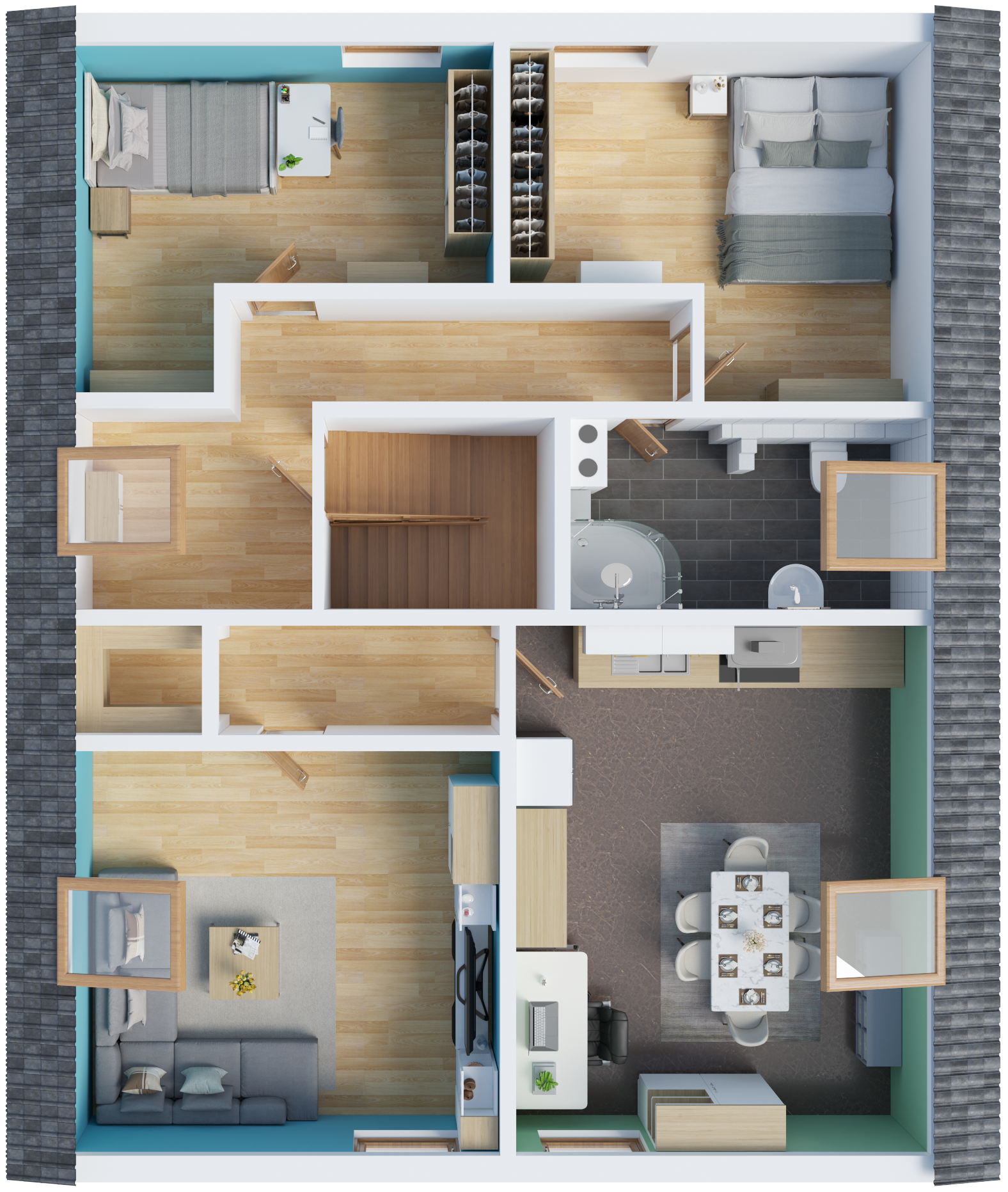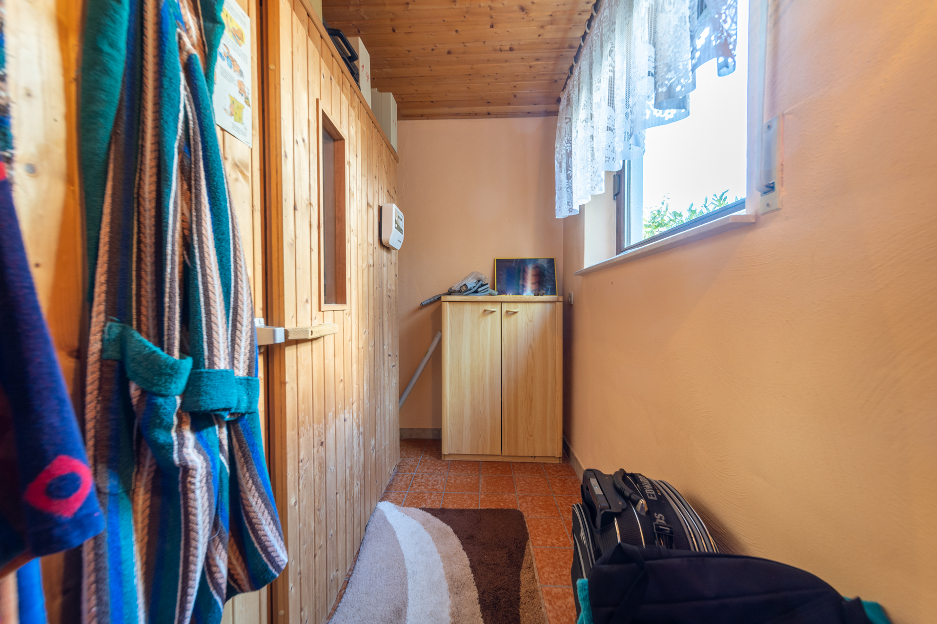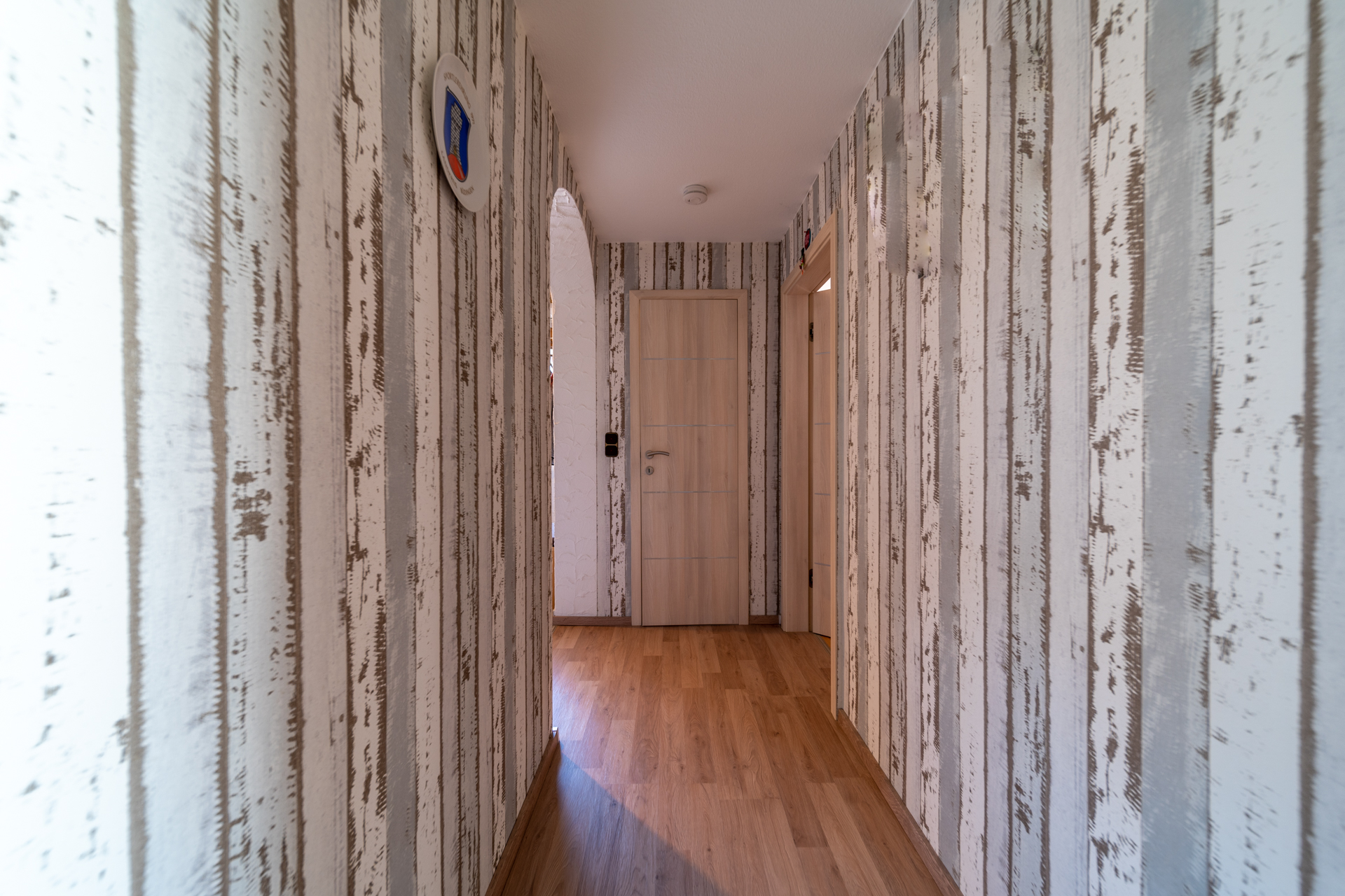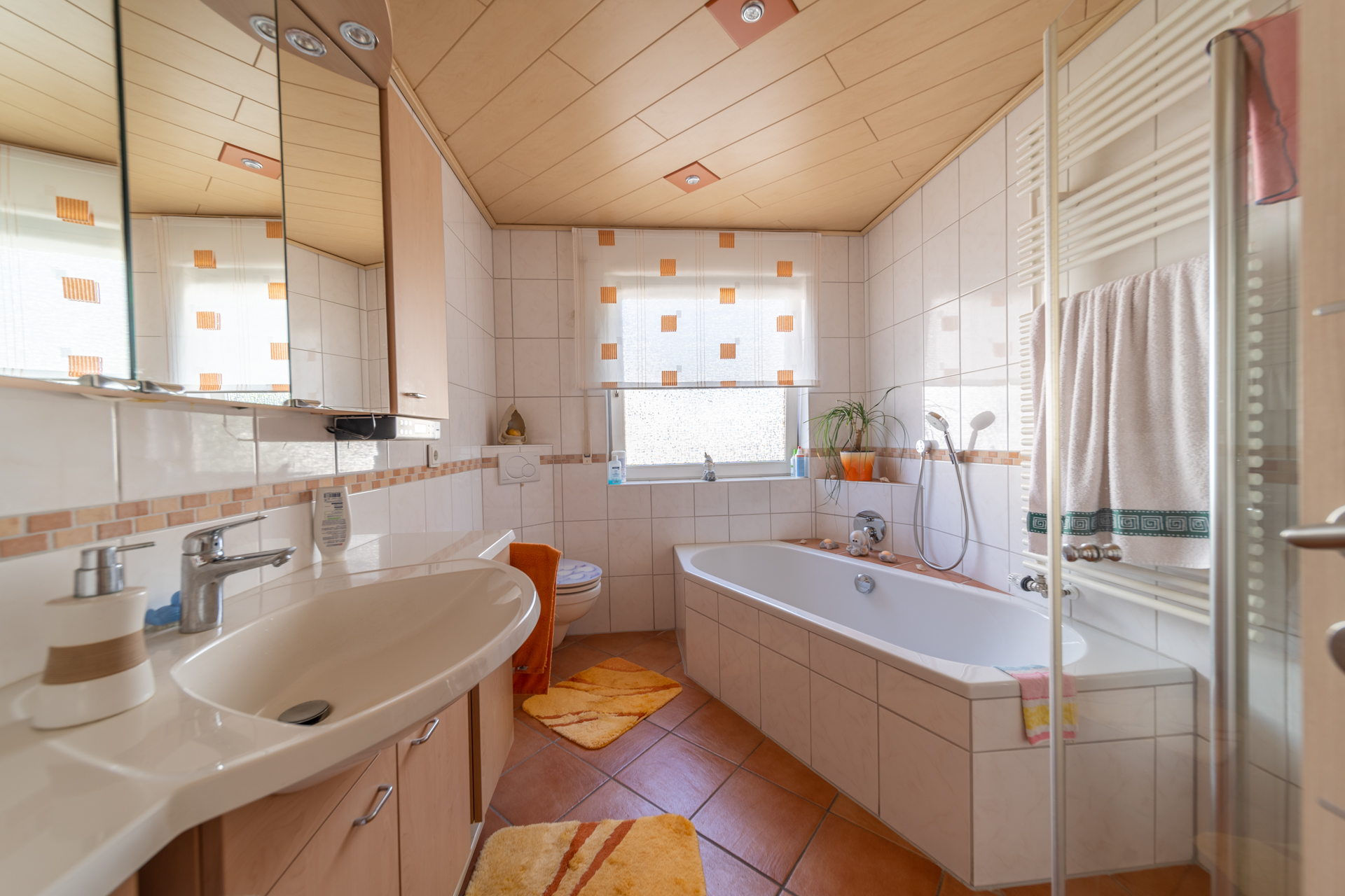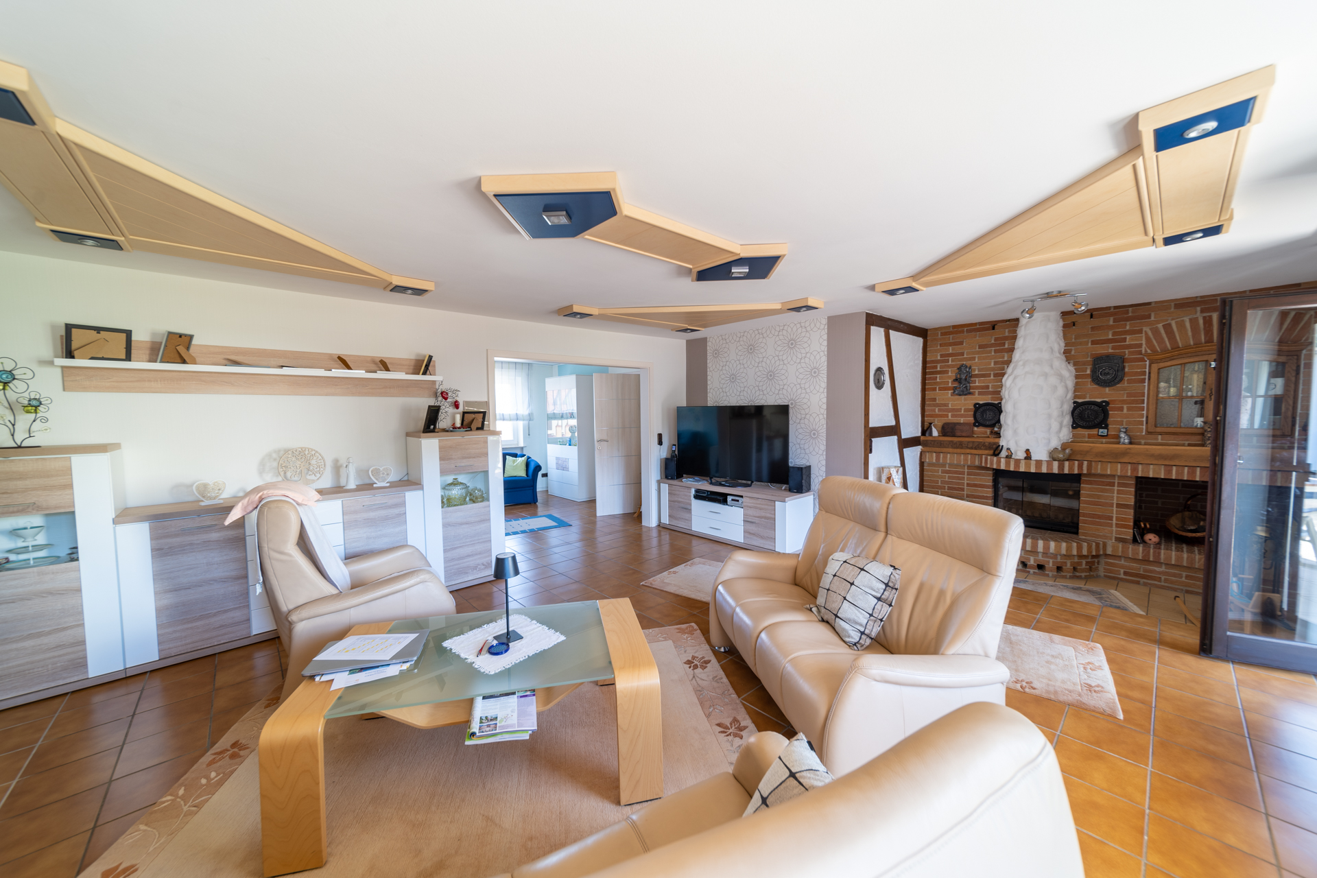 Im Obergeschoss befindet sich eine rund 112 m² große Wohnung, die den Mittelpunkt des Familienlebens bildet.