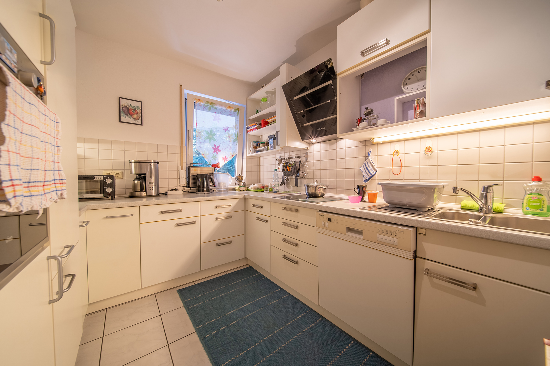 Die vorhandene Einbauküche lädt zum Kochen ein. Für ein angenehmes Wohnklima sorgt die Fußbodenheizung, gespeist durch eine Erdgas-Zentralheizung im Keller.