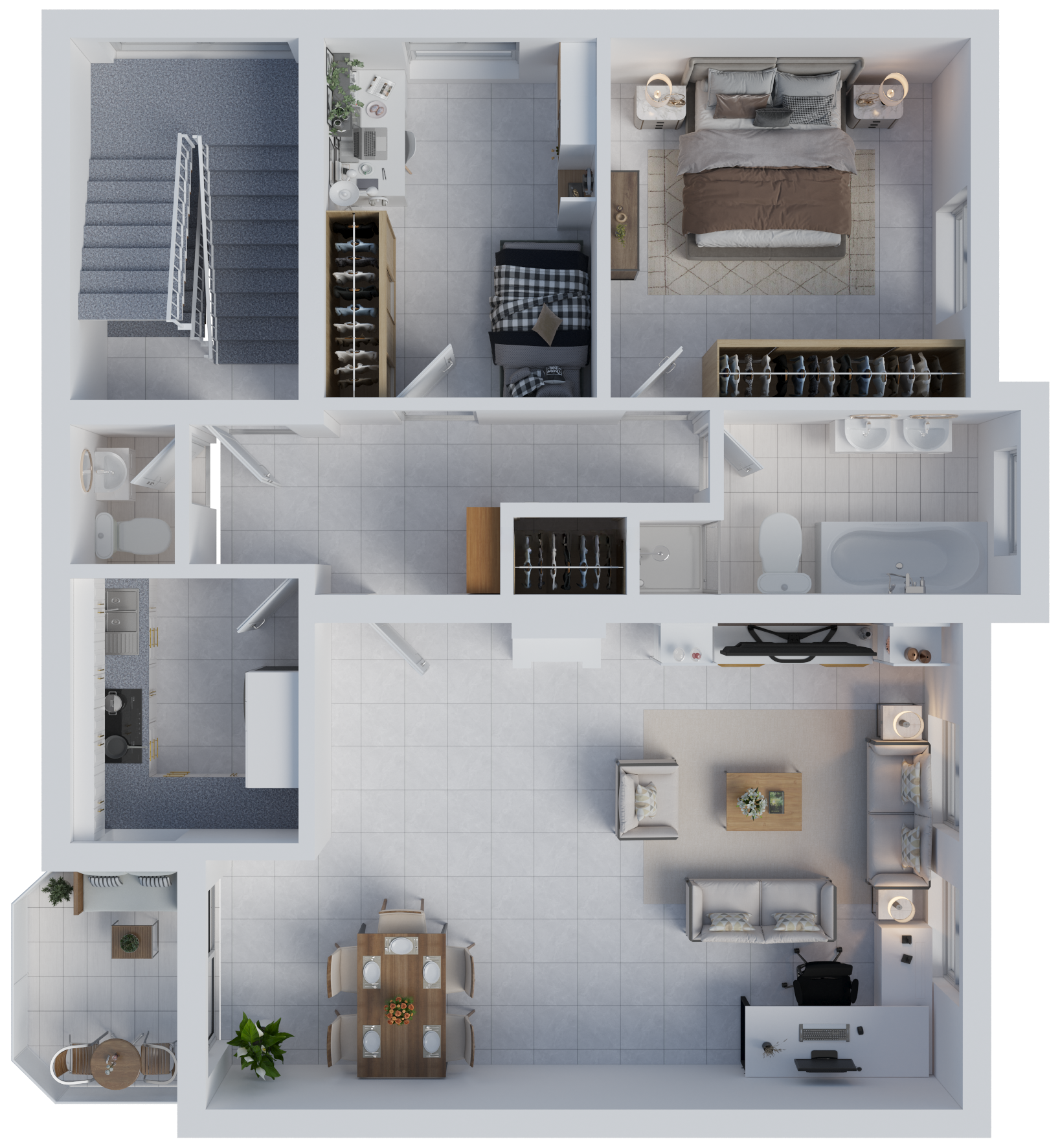 Zusätzlichen Stauraum bietet ein eigenes Kellerabteil. Darüber hinaus steht neben einem Wasch- und Trockenraum ein Gemeinschaftskeller zur Verfügung, der Platz für Fahrräder sowie Gartengeräte oder einen Grill bietet.