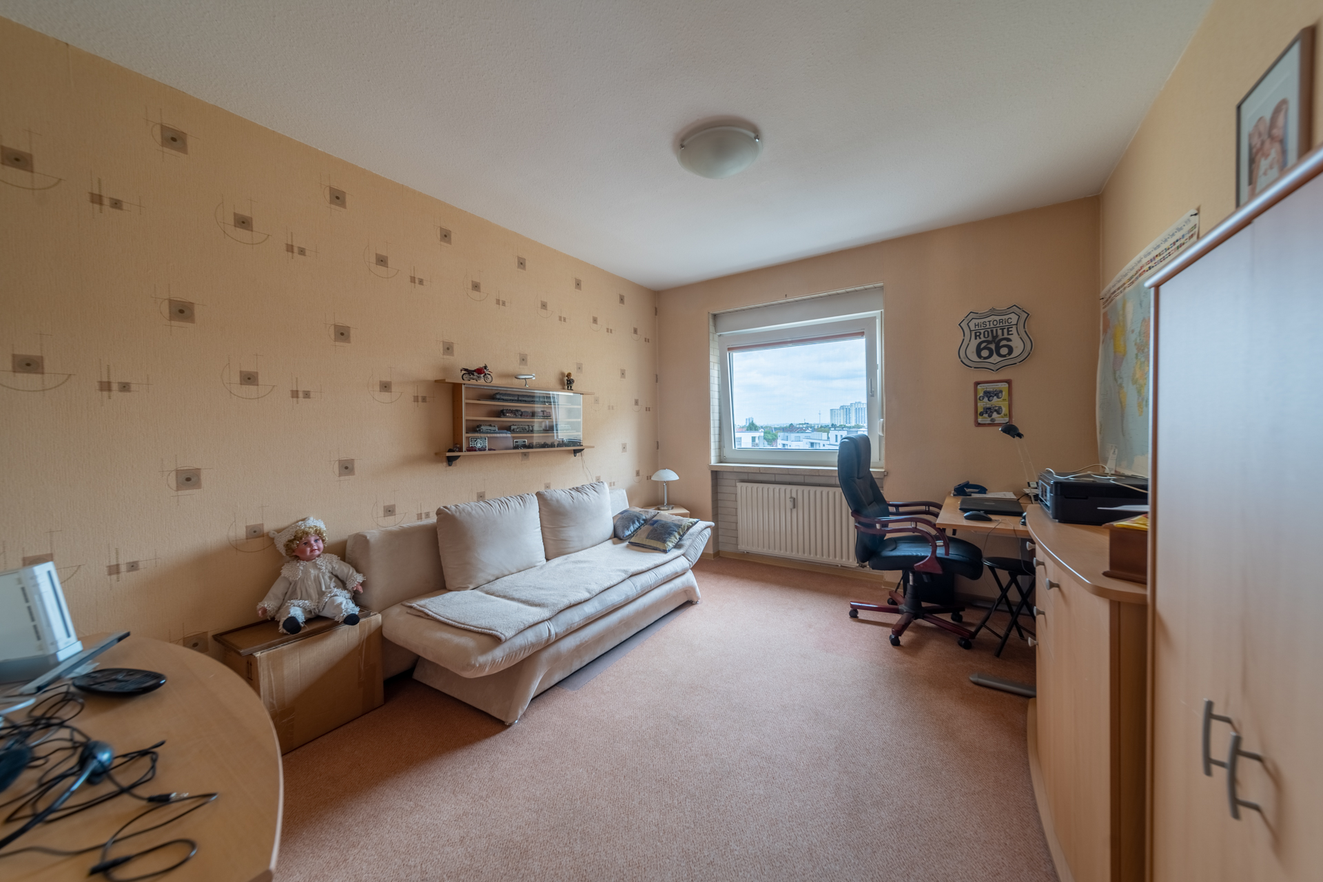Diese helle 4-Zimmerwohnung im 6. Obergeschoss eines gepflegten Mehrfamilienhauses bietet mit rund 105 m² Wohnfläche viel Platz für Familien oder Menschen, die großzügiges Wohnen und Homeoffice schätzen. Ein Aufzug verbindet die Tiefgarage bequem mit der Wohnungsebene.