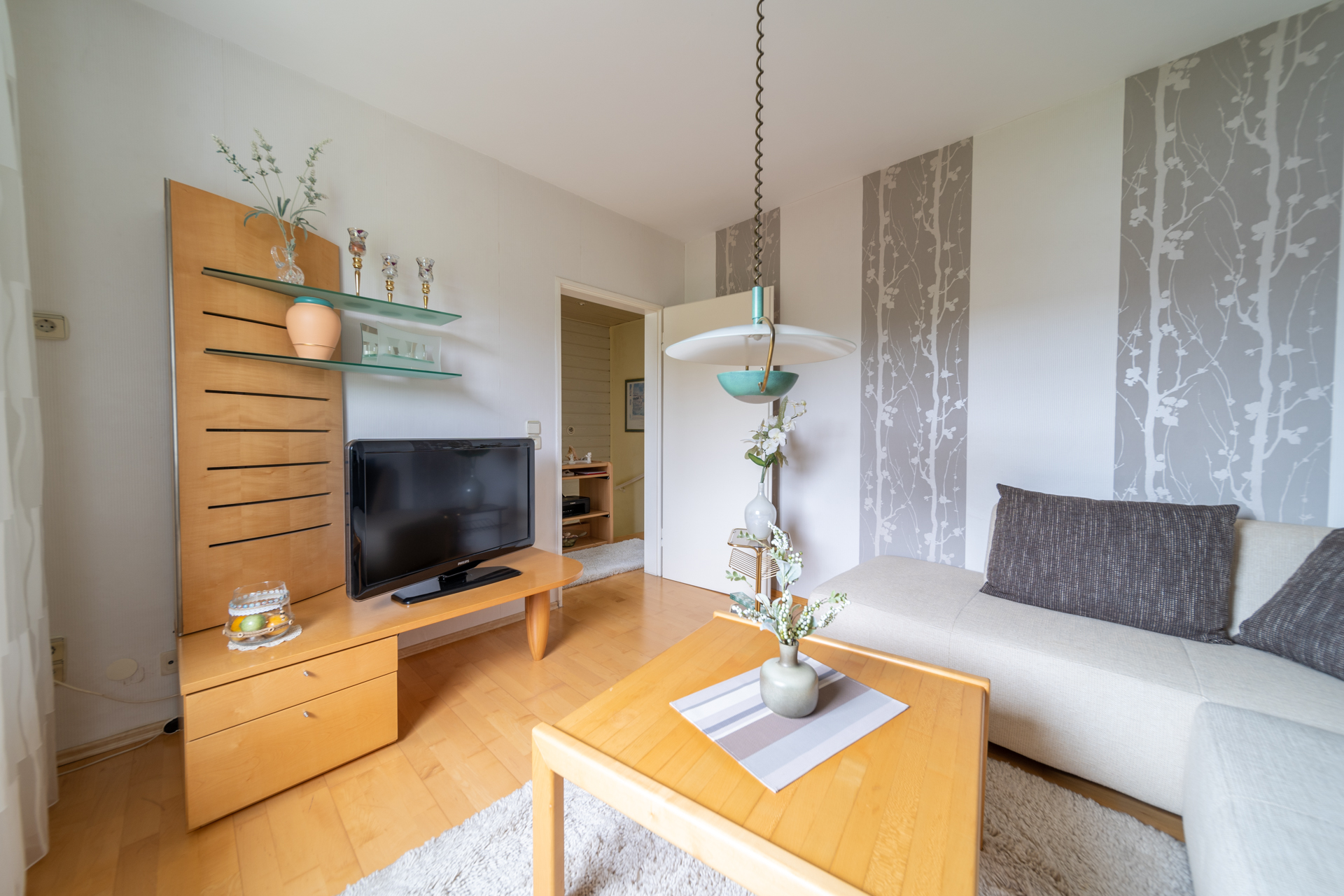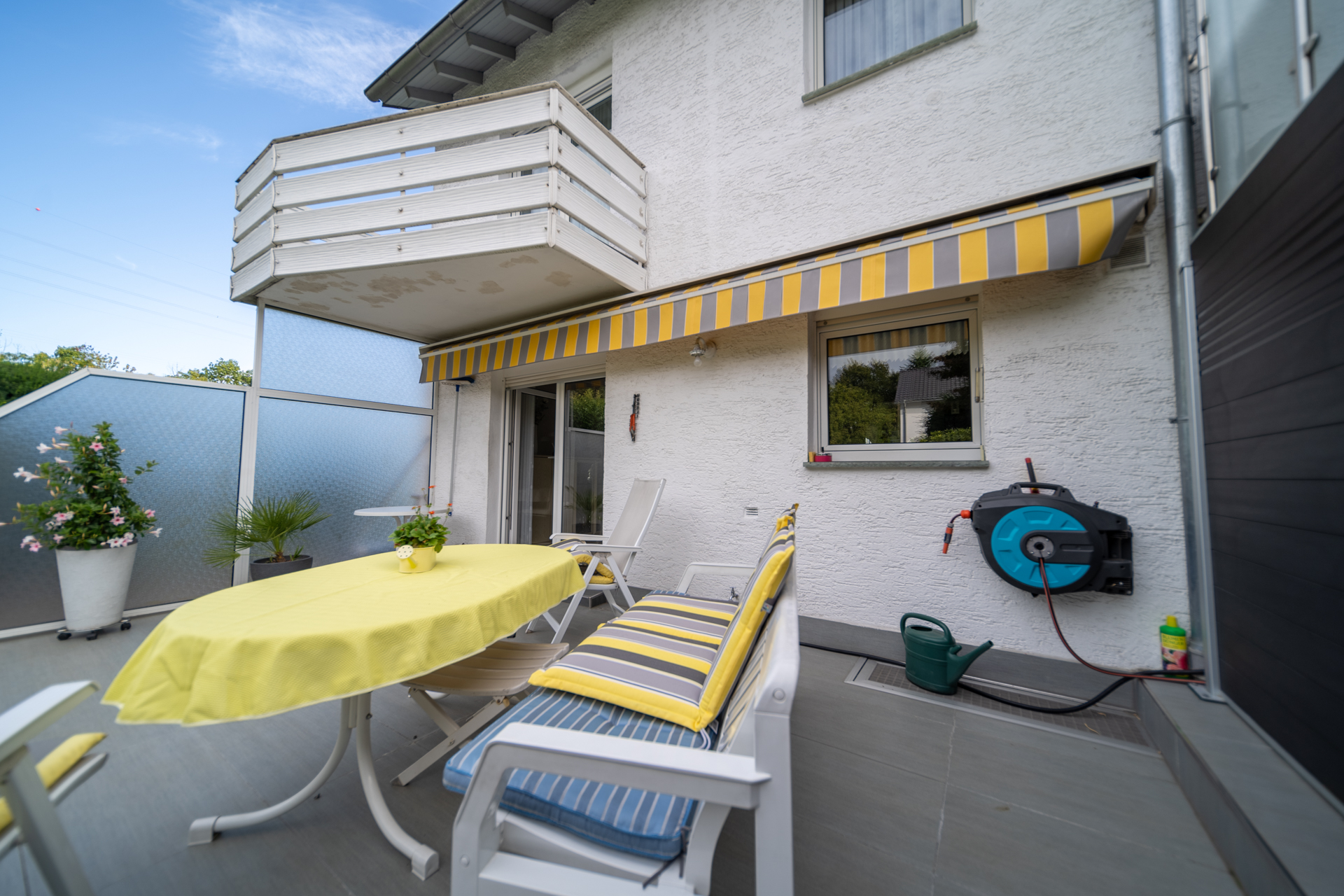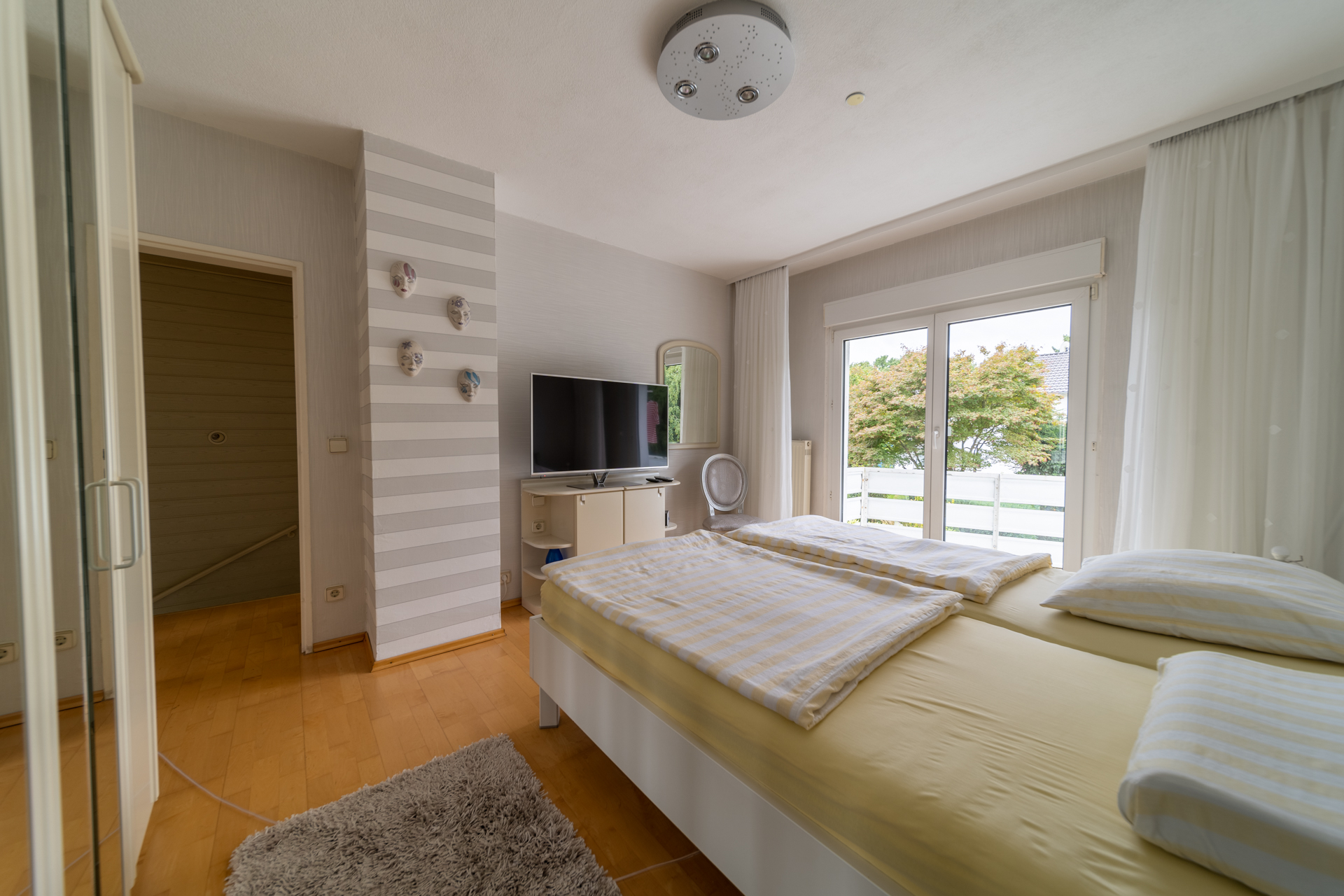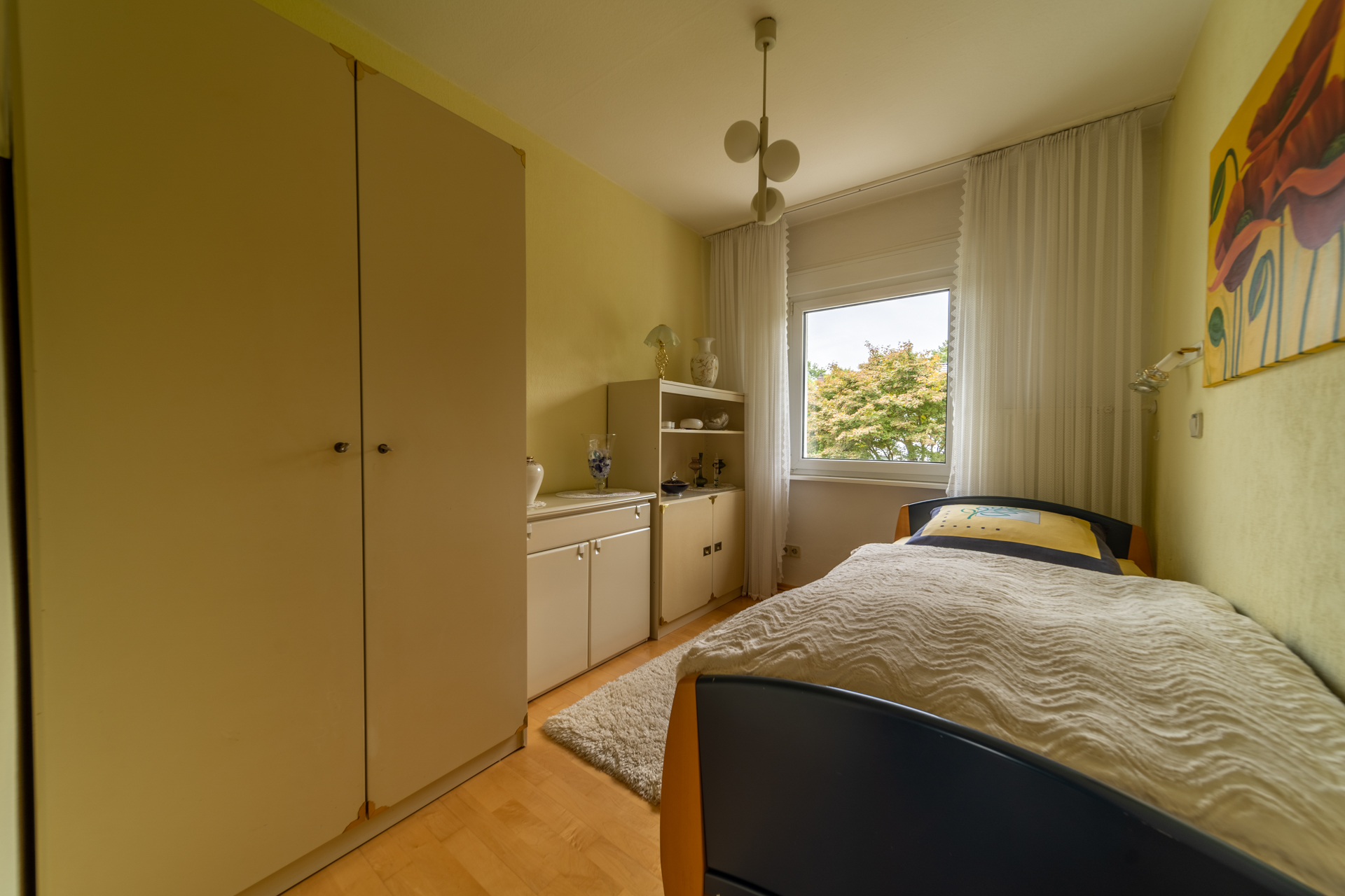 Das Tageslichtbad mit Duschwanne sorgt für einen guten Start in den Tag. Besonders schön: Ein Schlafzimmer verfügt über einen Balkon mit Blick in den grünen Garten.