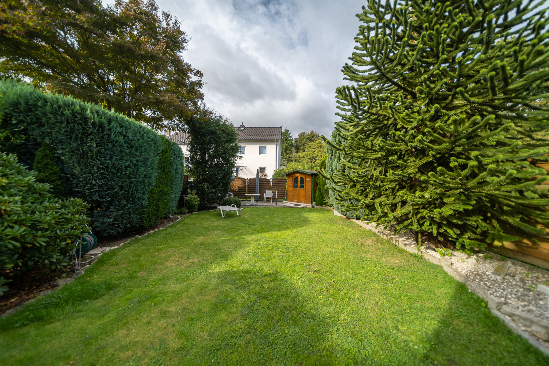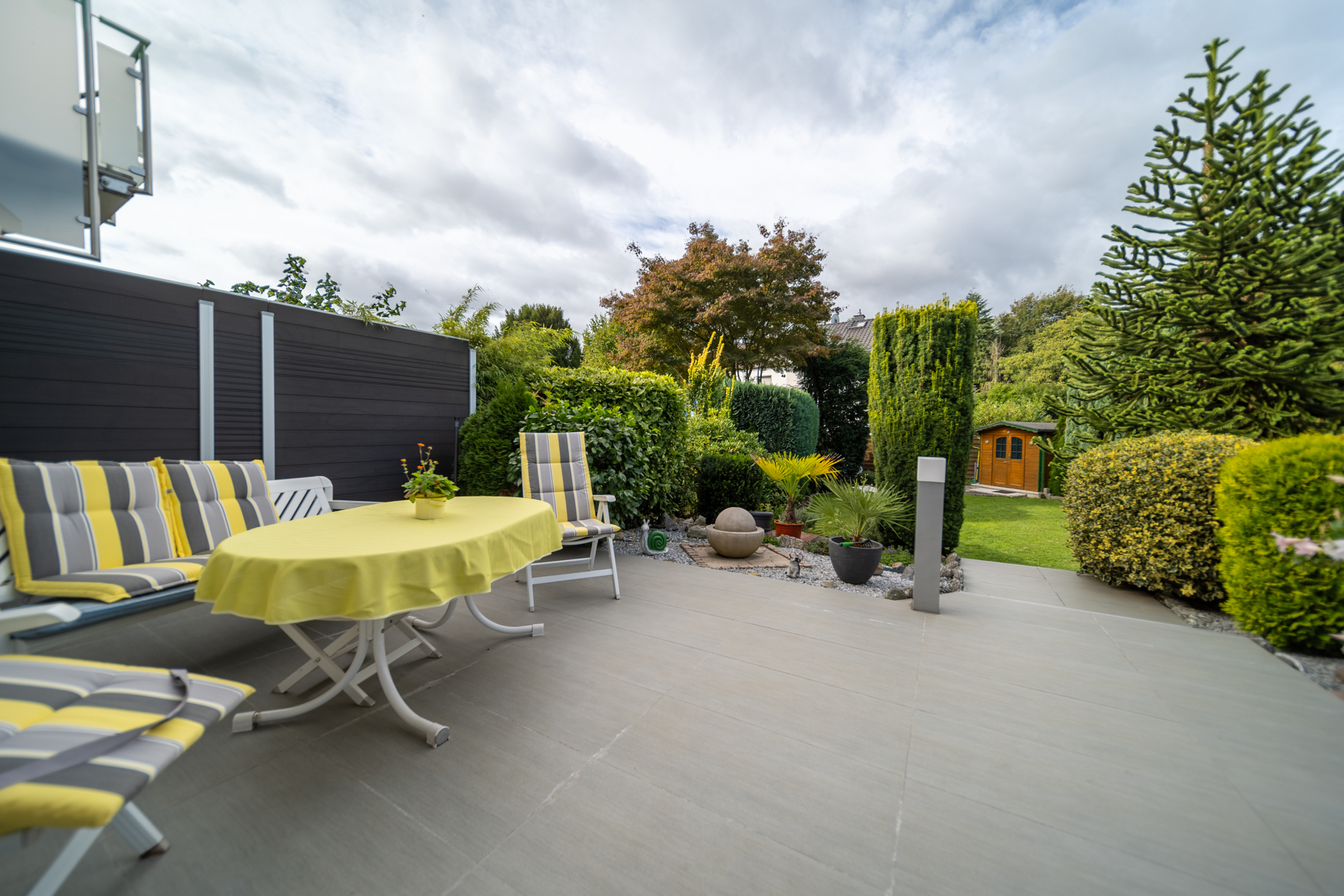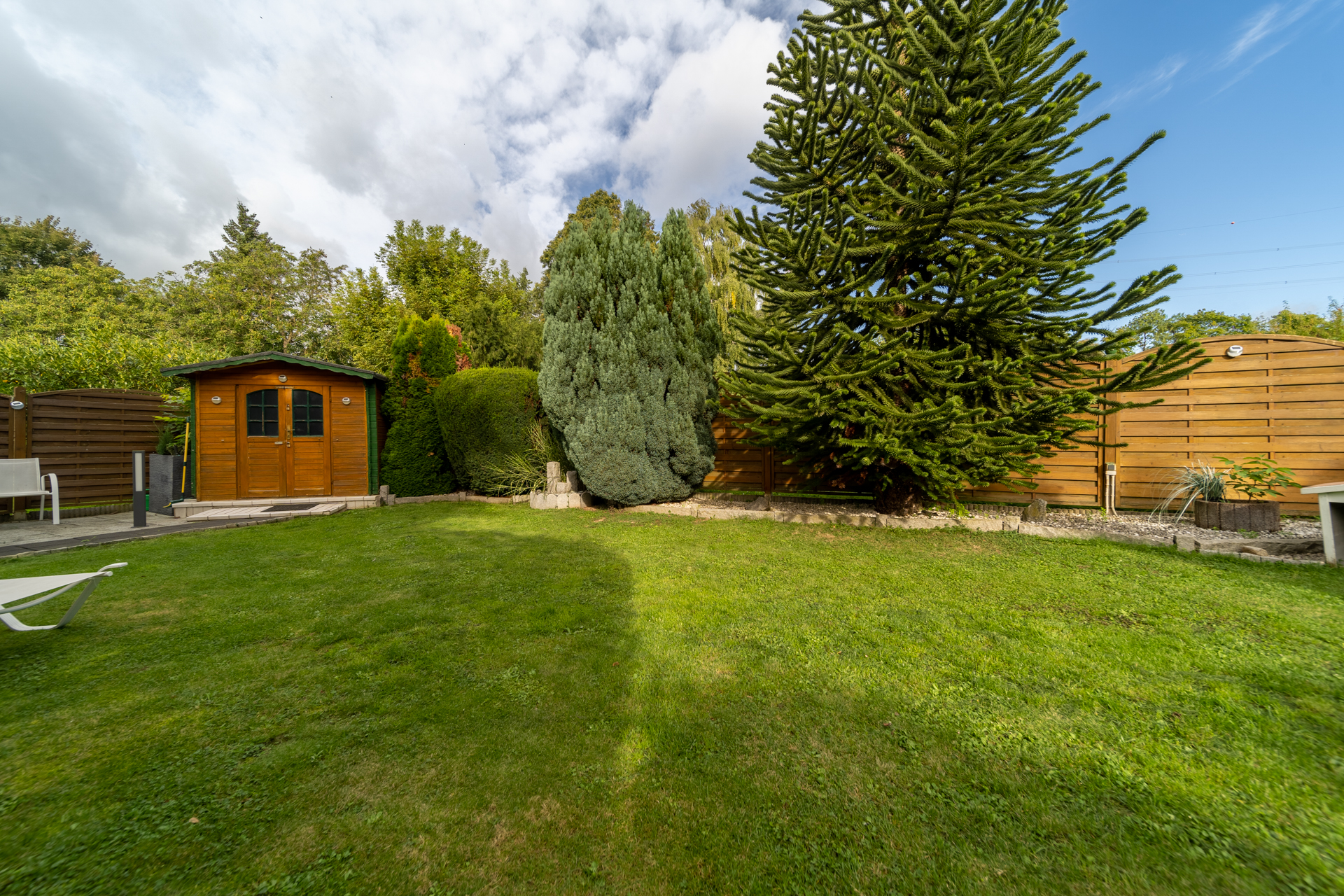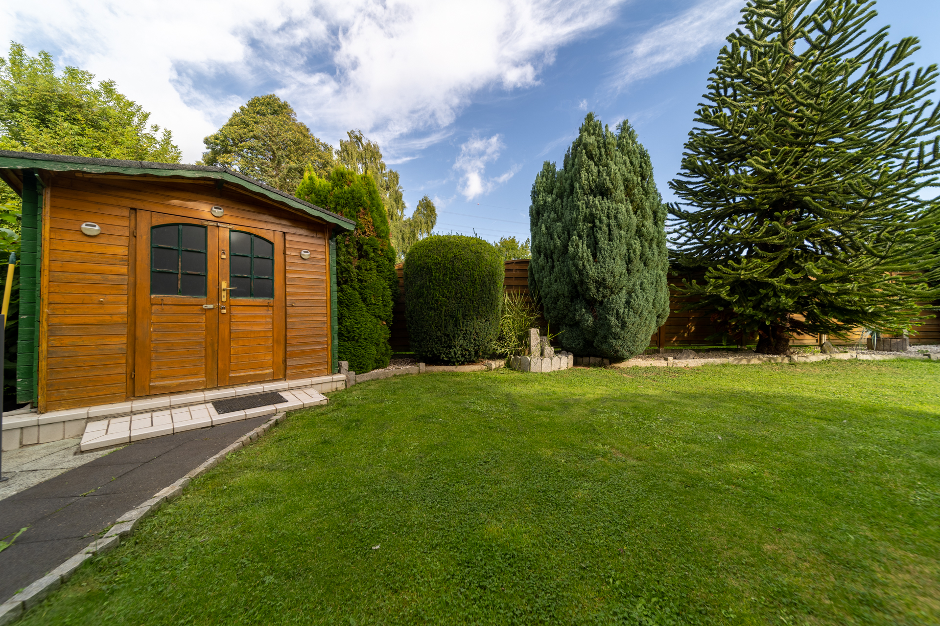 Im Erdgeschoss erwartet Sie ein großzügiger Wohn- und Essbereich, der das Herzstück des Hauses bildet. Hier hat die ganze Familie Platz, um gemeinsam Zeit zu verbringen. Die angrenzende Küche ermöglicht kurze Wege und eine offene Verbindung zum Geschehen. Von Wohnzimmer und Essbereich gelangen Sie direkt auf die geflieste Terrasse – perfekt für Mahlzeiten im Freien oder entspannte Nachmittage. Der schön angelegte Garten mit Südwestausrichtung bietet Kindern viel Platz zum Spielen und lädt Erwachsene gleichermaßen zum Entspannen ein. Eine Gartenhütte ergänzt das Familienparadies praktisch und charmant.