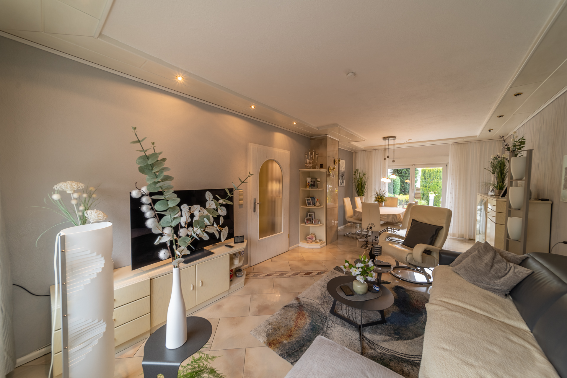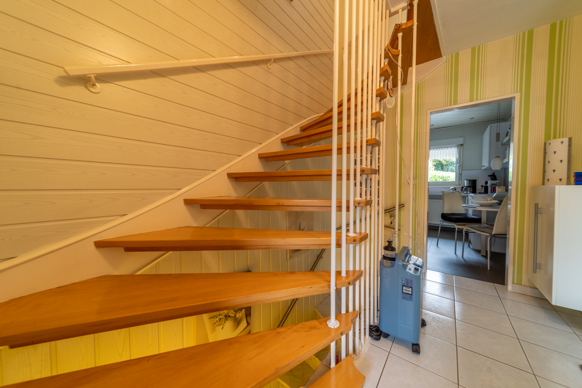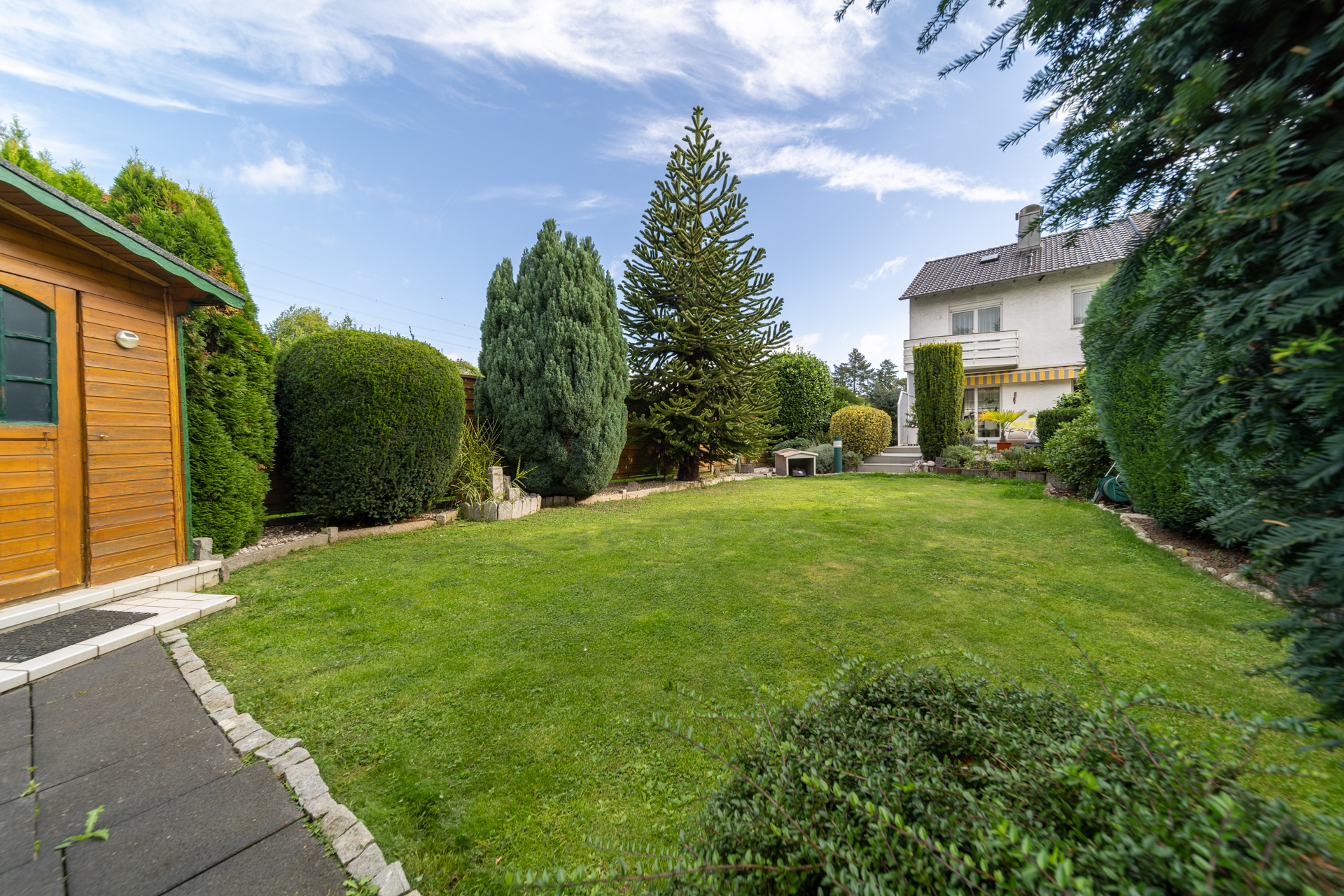 Im Erdgeschoss erwartet Sie ein großzügiger Wohn- und Essbereich, der das Herzstück des Hauses bildet. Hier hat die ganze Familie Platz, um gemeinsam Zeit zu verbringen. Die angrenzende Küche ermöglicht kurze Wege und eine offene Verbindung zum Geschehen. Von Wohnzimmer und Essbereich gelangen Sie direkt auf die geflieste Terrasse – perfekt für Mahlzeiten im Freien oder entspannte Nachmittage. Der schön angelegte Garten mit Südwestausrichtung bietet Kindern viel Platz zum Spielen und lädt Erwachsene gleichermaßen zum Entspannen ein. Eine Gartenhütte ergänzt das Familienparadies praktisch und charmant.