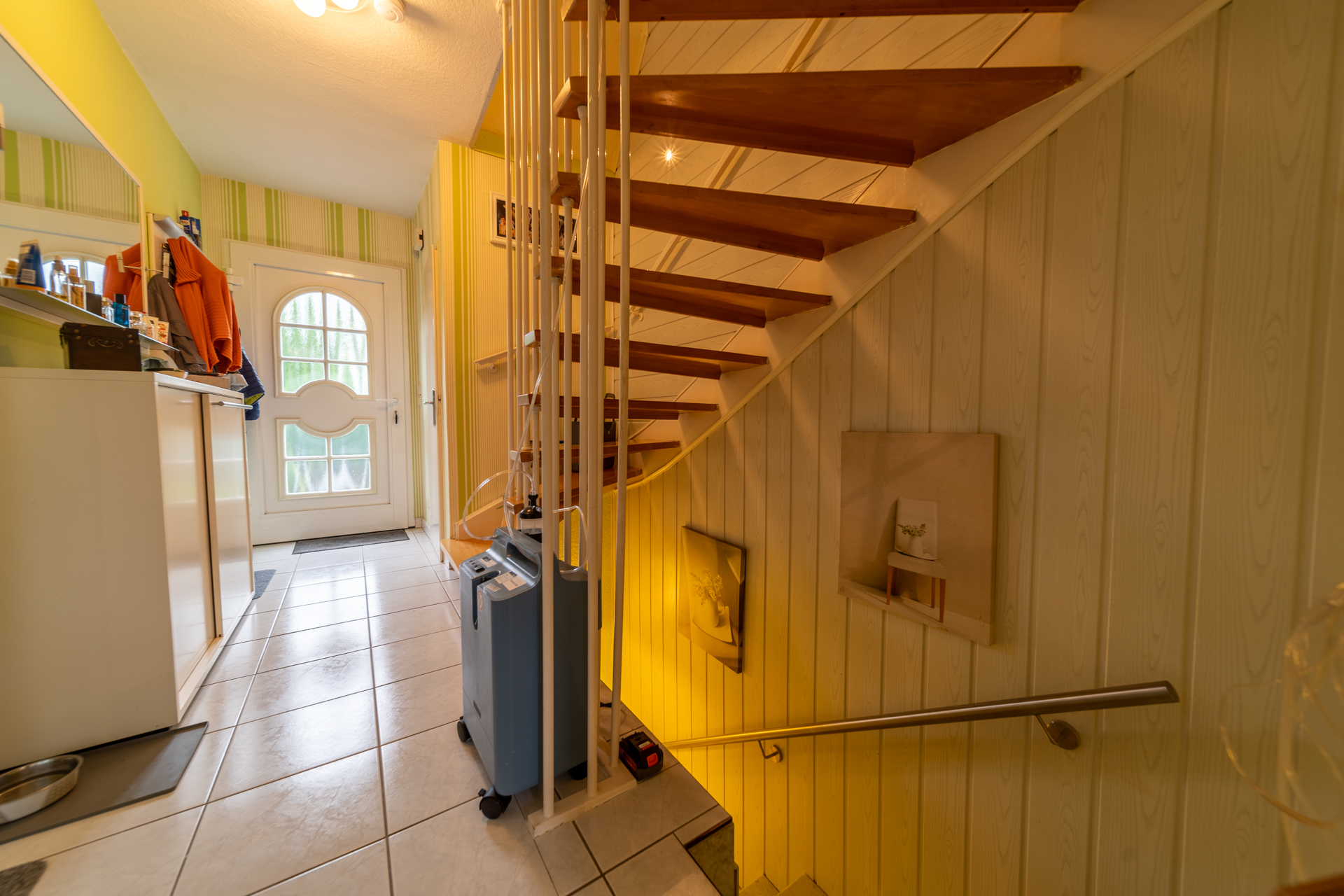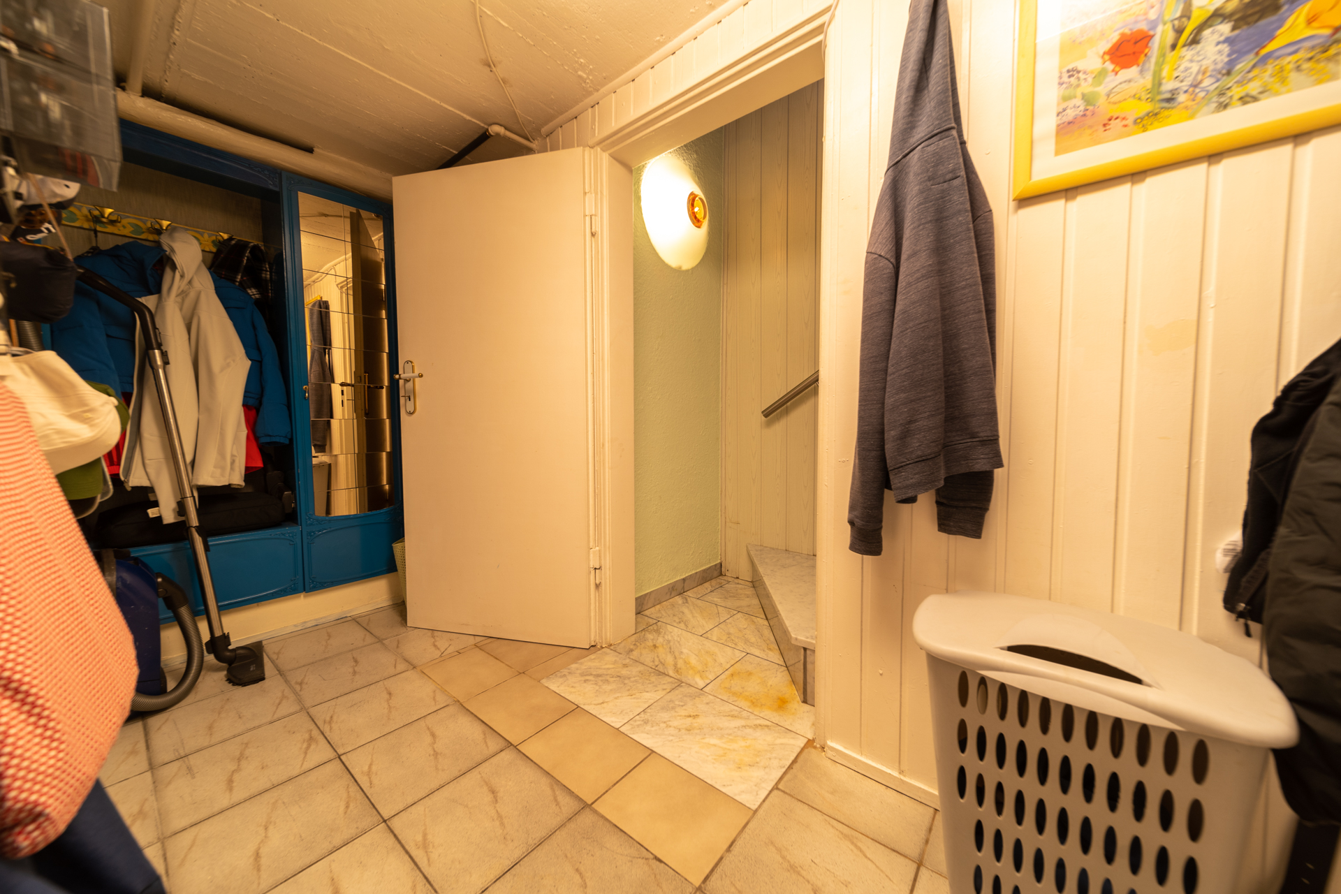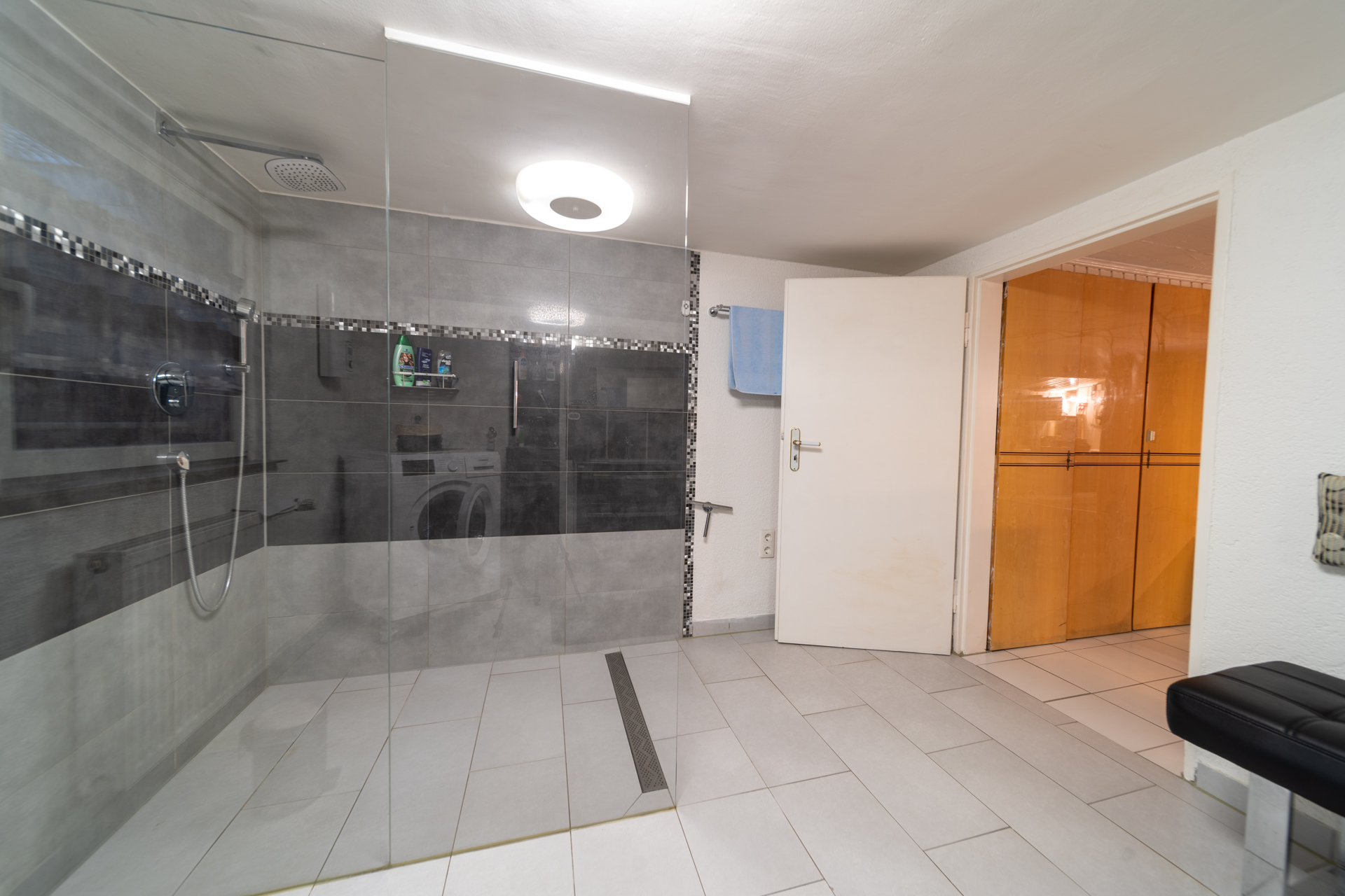 Das Haus ist voll unterkellert und bietet damit wertvolle Zusatzfläche. Neben einem Lagerraum gibt es eine Waschküche mit einer weiteren ebenerdigen Dusche sowie den Heizraum mit Öltank und kleiner Werkbank – praktisch für Hobbys oder kleinere Reparaturen. Beheizt wird das Haus über eine zentrale Ölheizung.