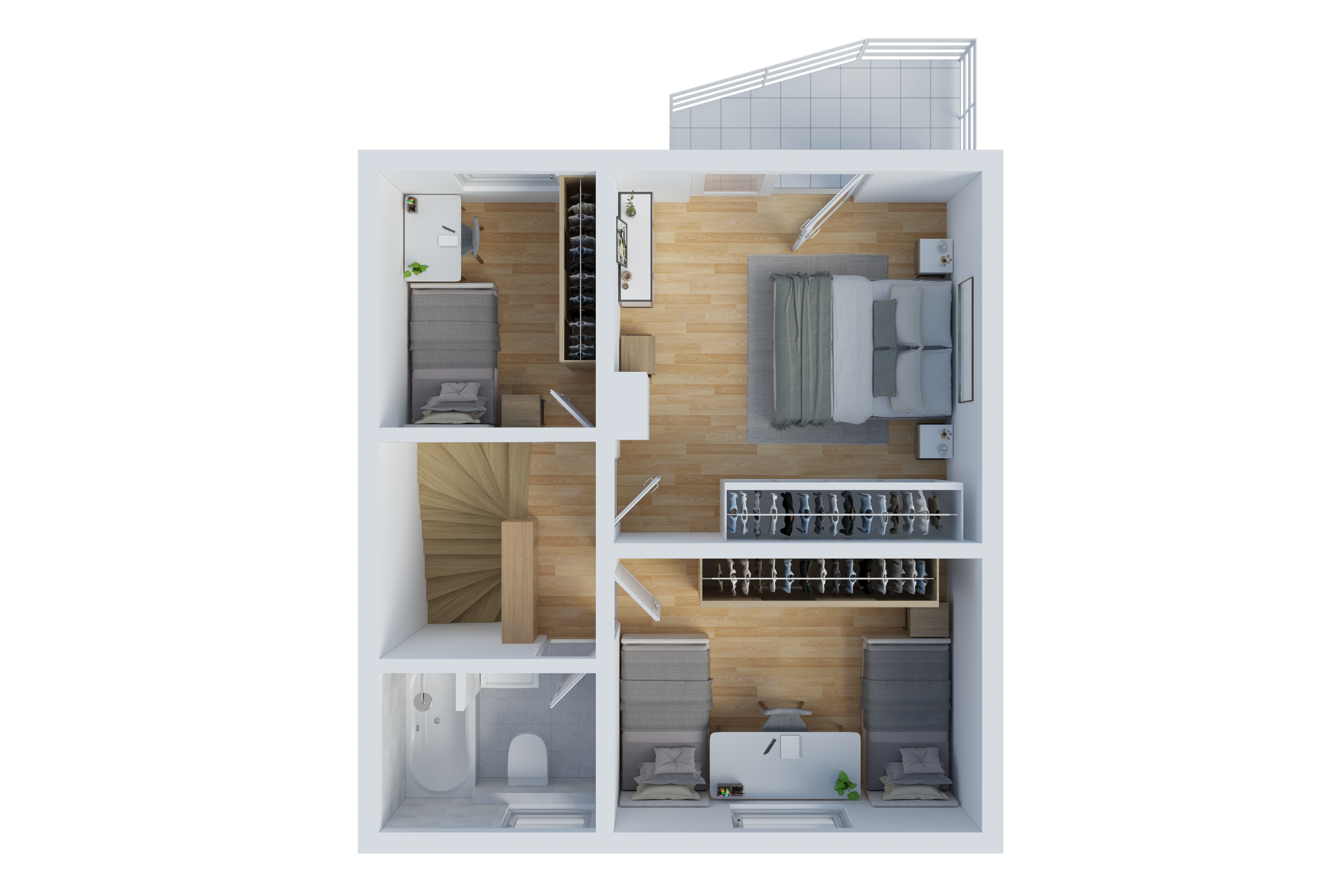 Im Obergeschoss stehen drei flexibel nutzbare Zimmer zur Verfügung – ob als Kinderzimmer, Elternschlafzimmer oder Homeoffice, hier findet jeder seinen Rückzugsort.