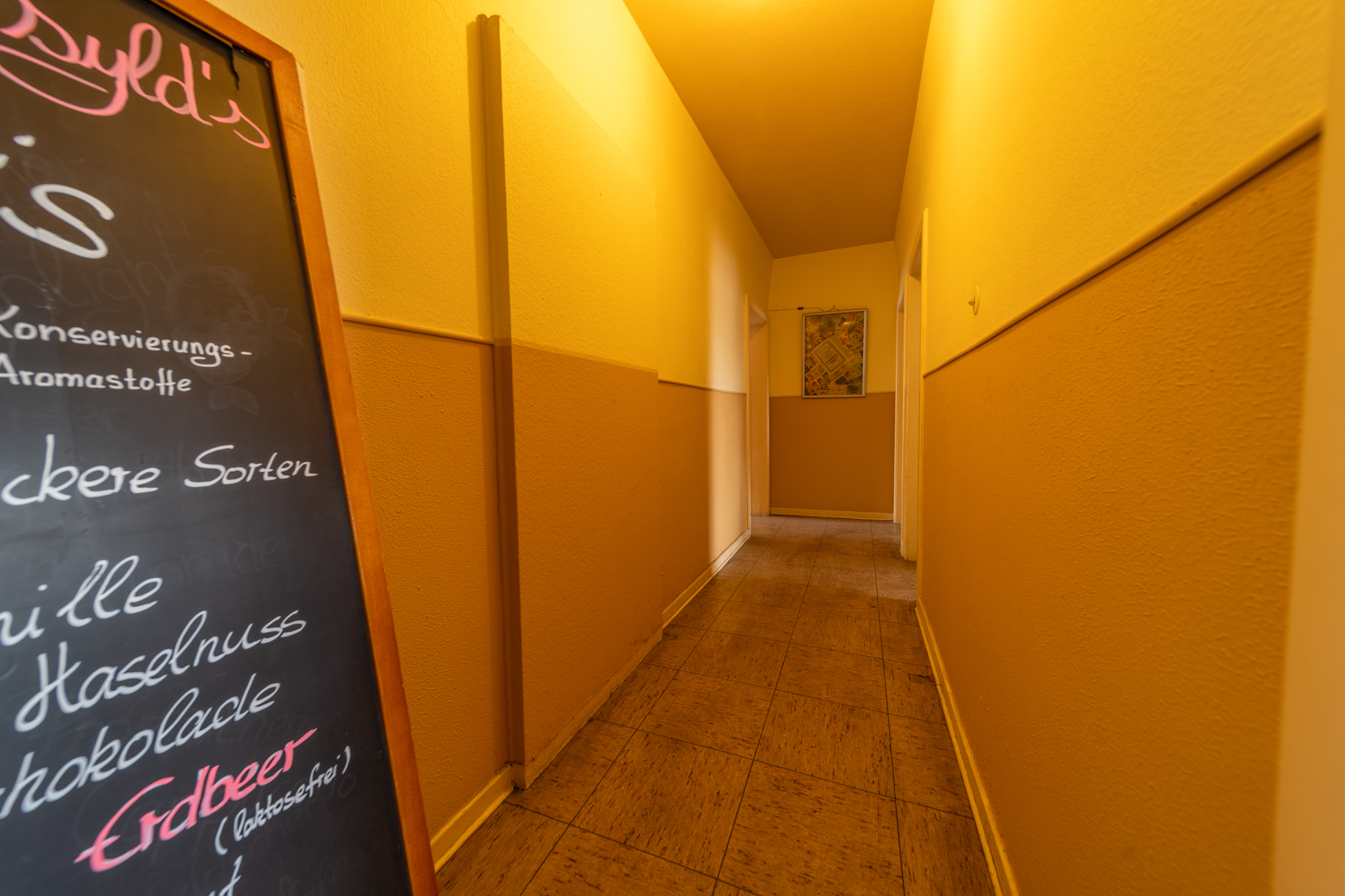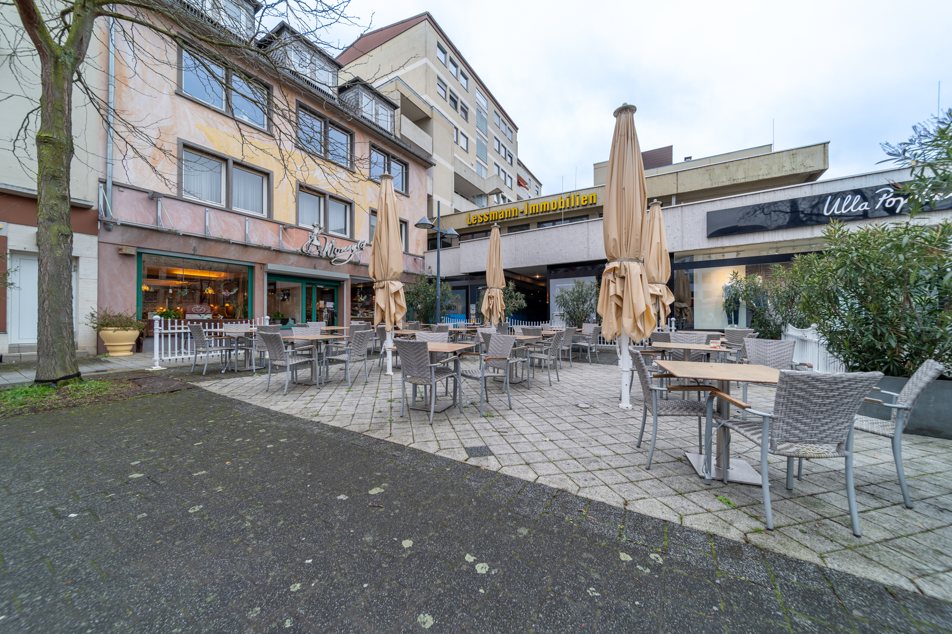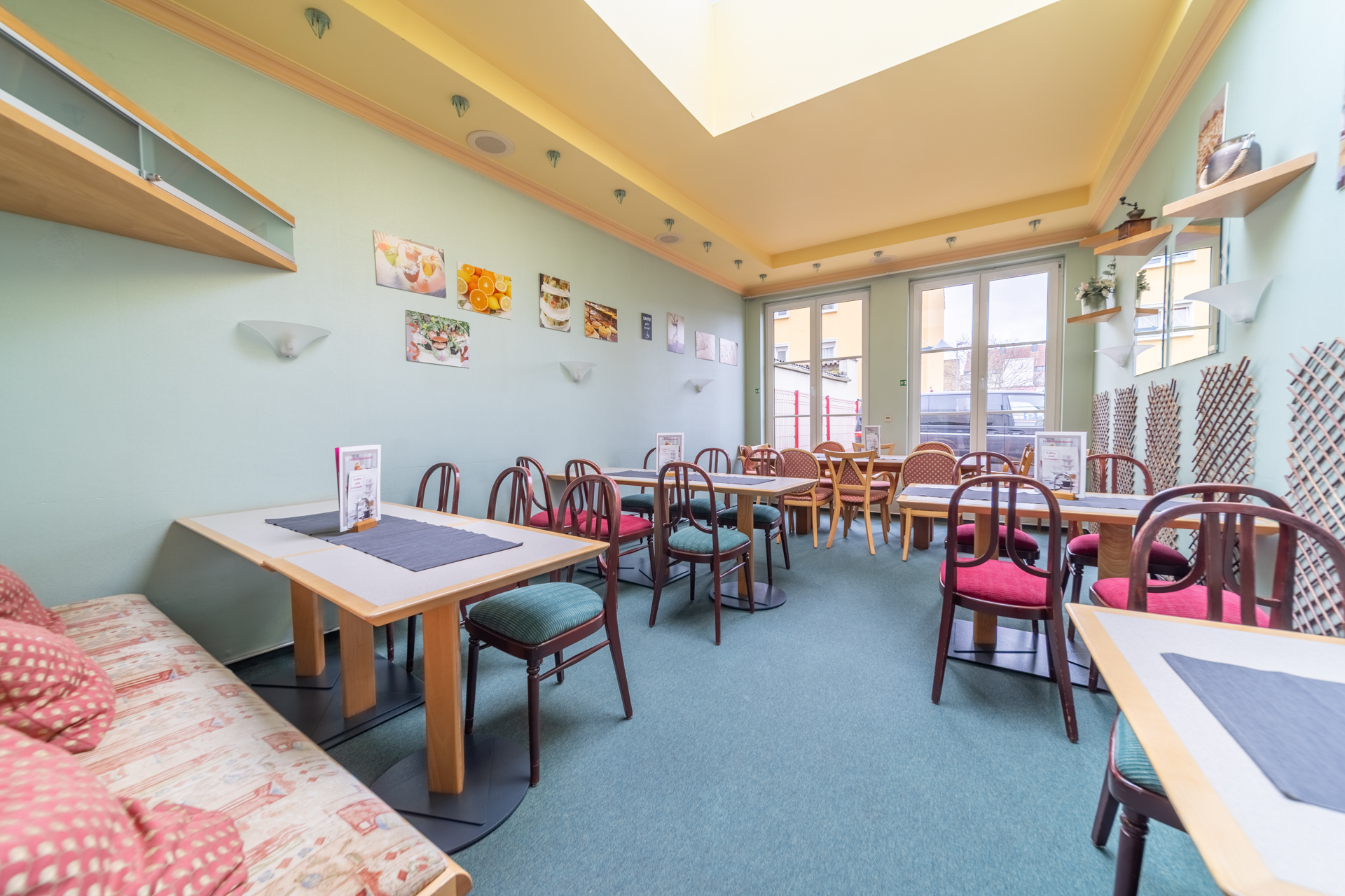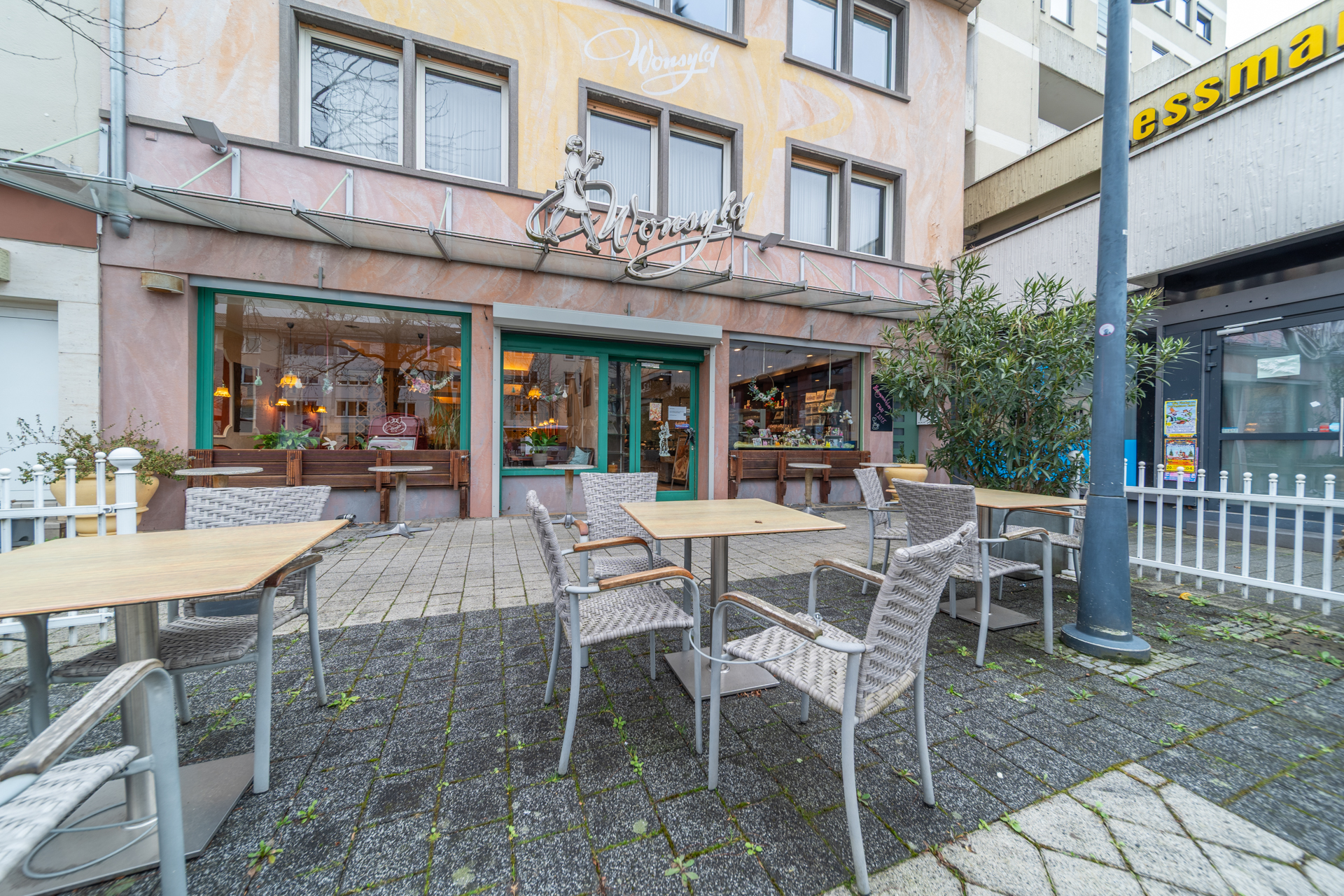 Die Gewerbefläche wurde zuletzt als Café betrieben (ehemals „Café Wonsyld“) und ist entsprechend für gastronomische Nutzung ausgelegt. Eine Fortführung im Bereich Café, Restaurant oder ähnlicher Konzepte ist grundsätzlich möglich, ebenso aber auch eine alternative gewerbliche Nutzung.
