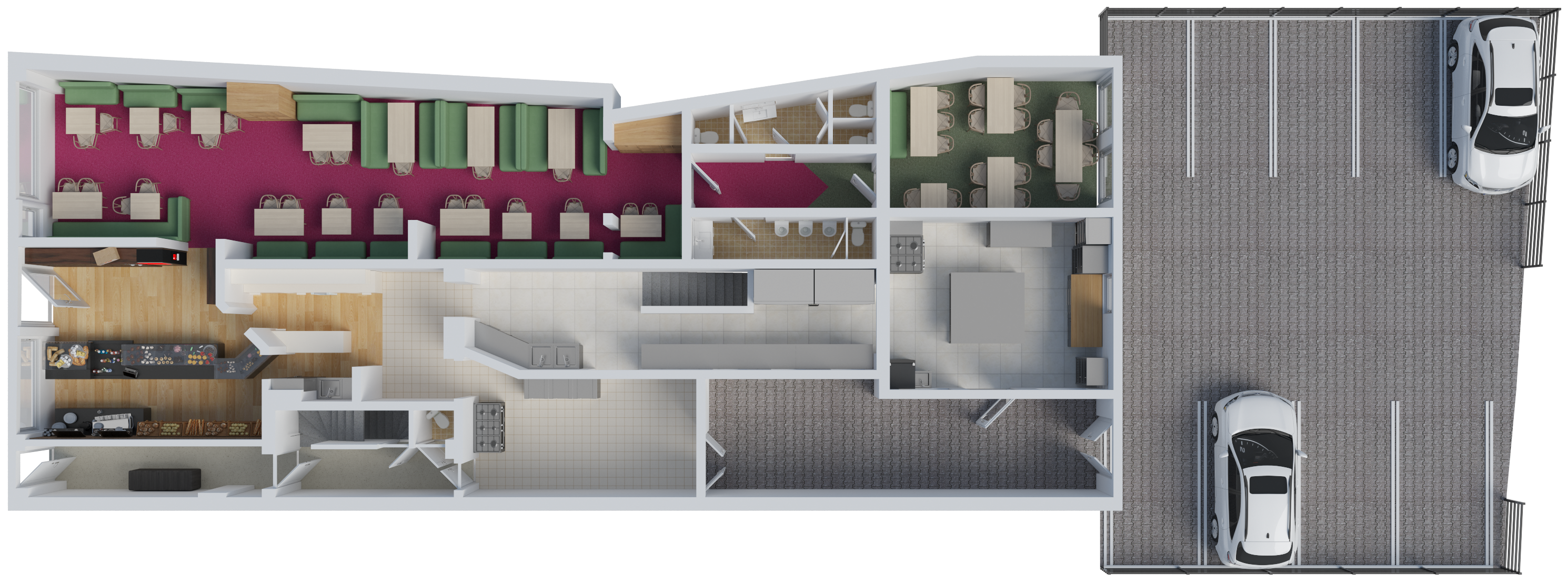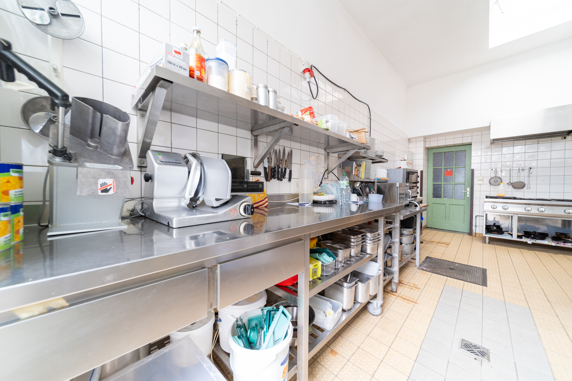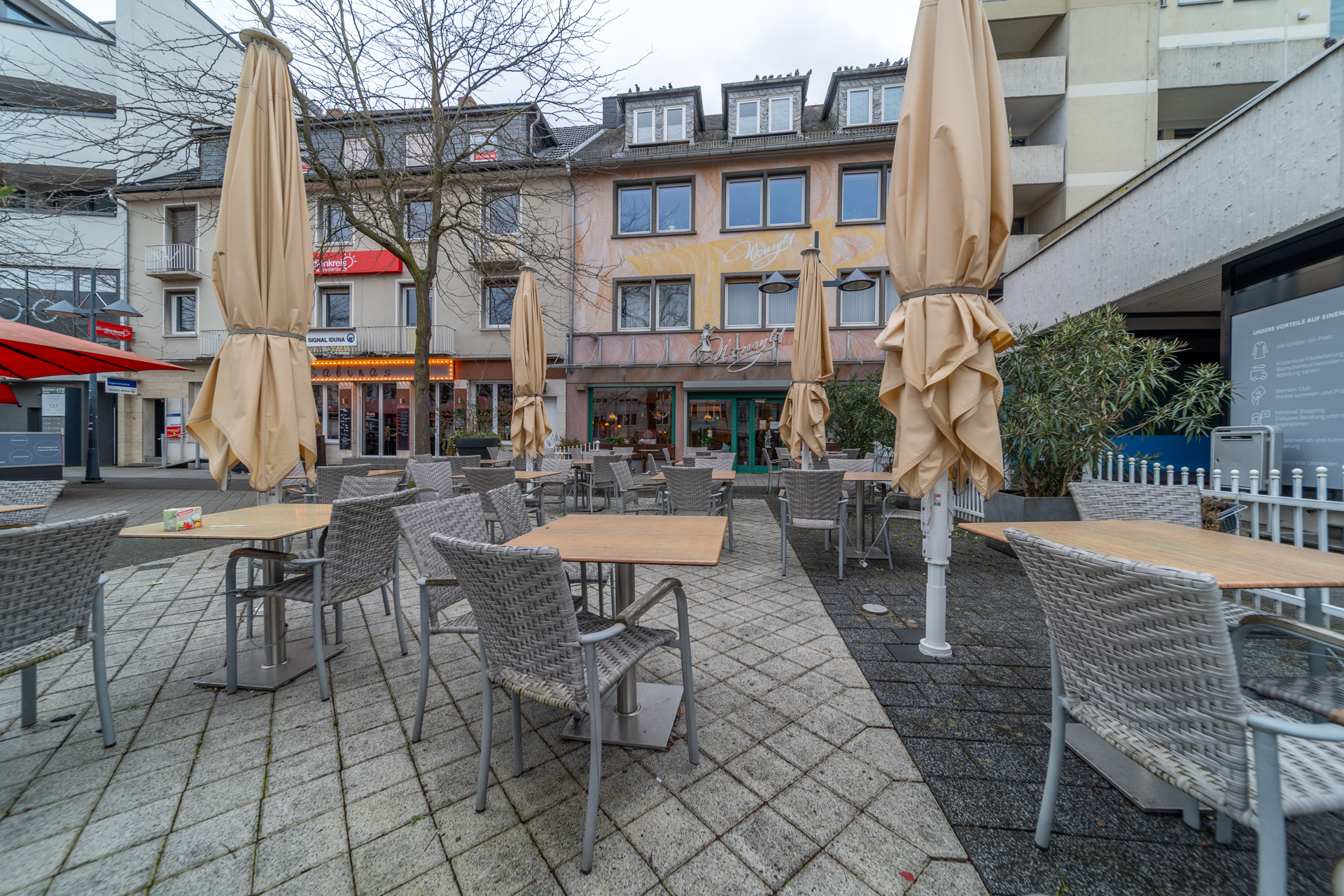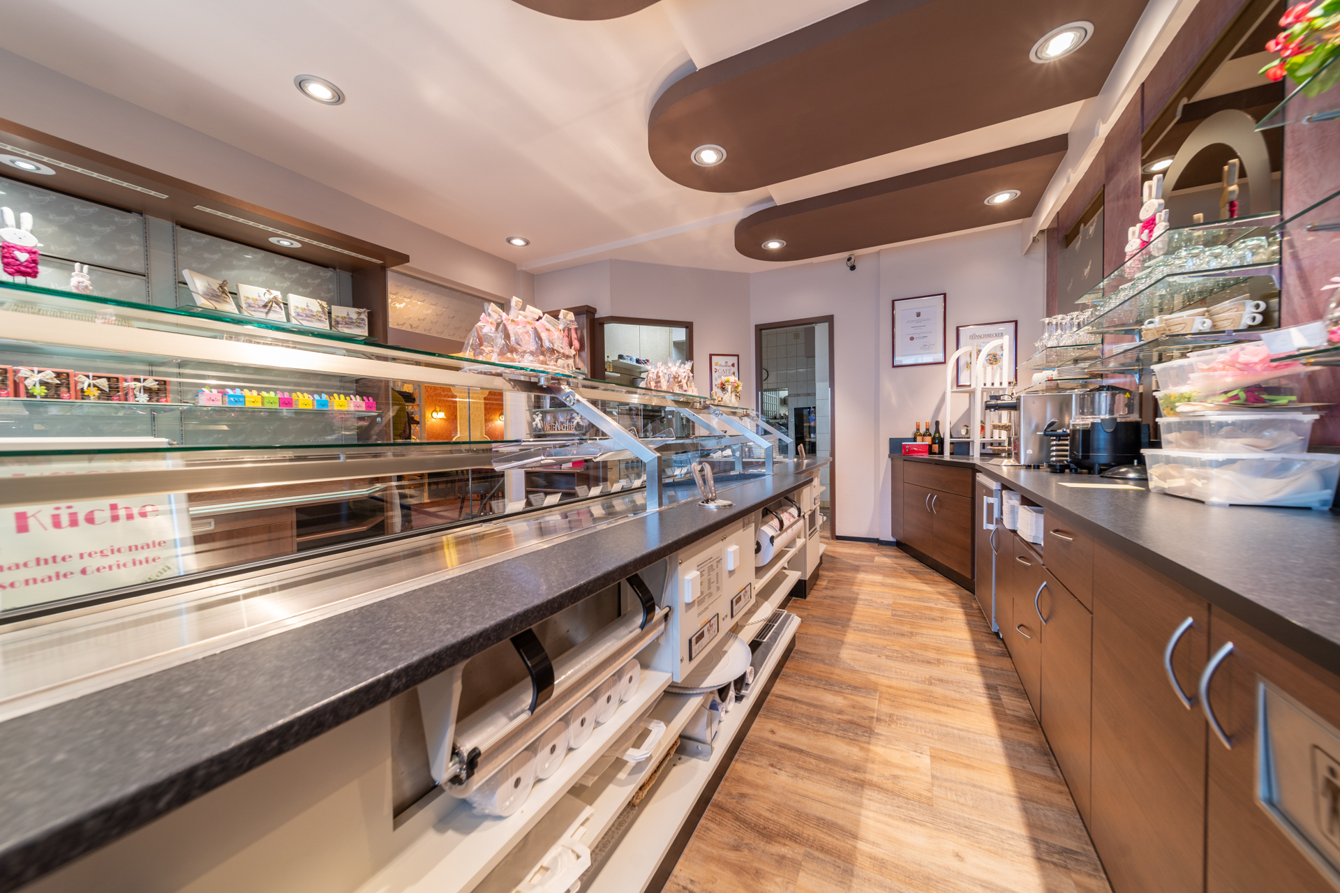 Die Gewerbefläche wurde zuletzt als Café betrieben (ehemals „Café Wonsyld“) und ist entsprechend für gastronomische Nutzung ausgelegt. Eine Fortführung im Bereich Café, Restaurant oder ähnlicher Konzepte ist grundsätzlich möglich, ebenso aber auch eine alternative gewerbliche Nutzung.