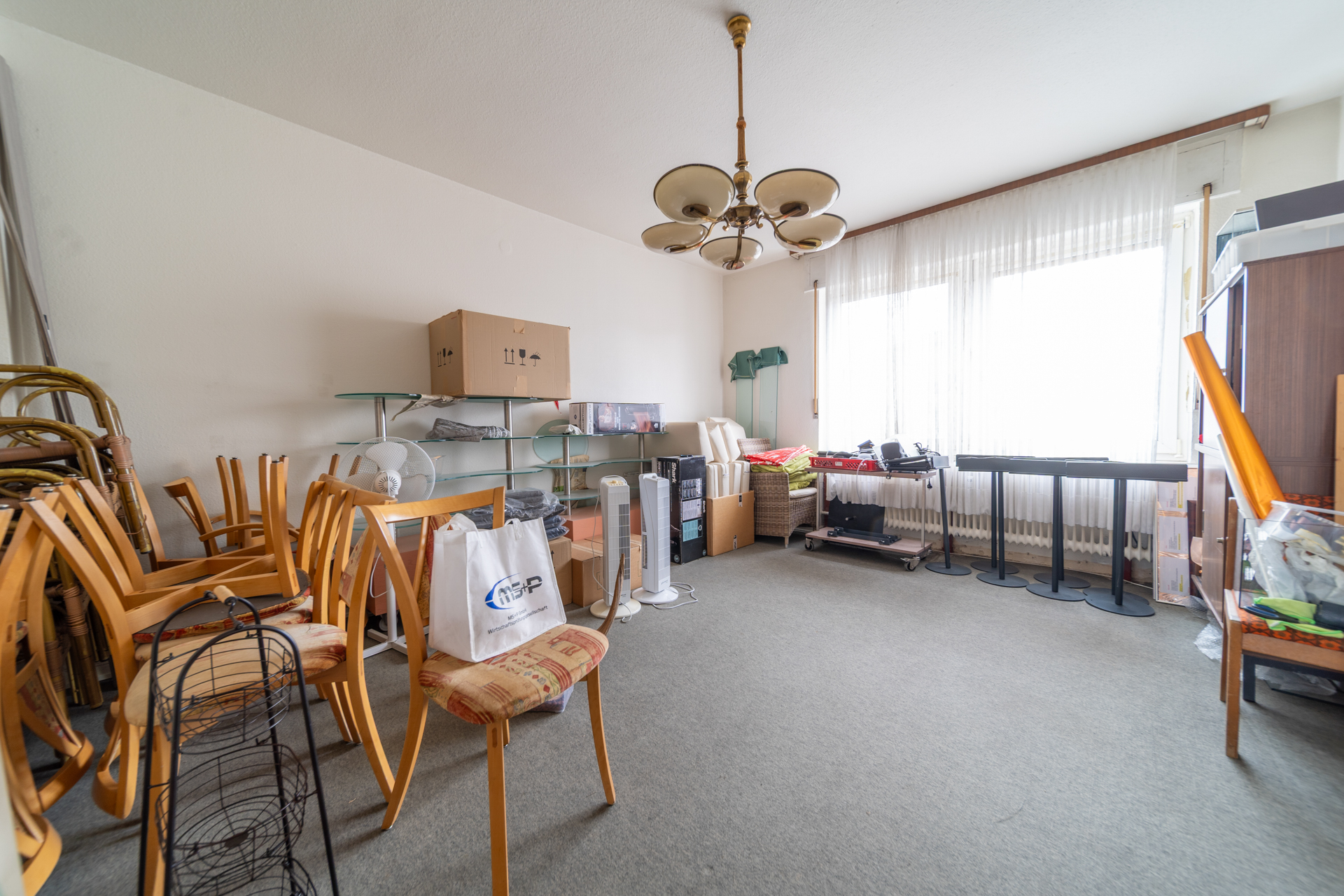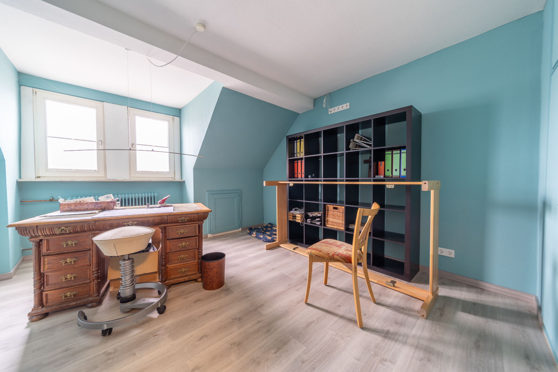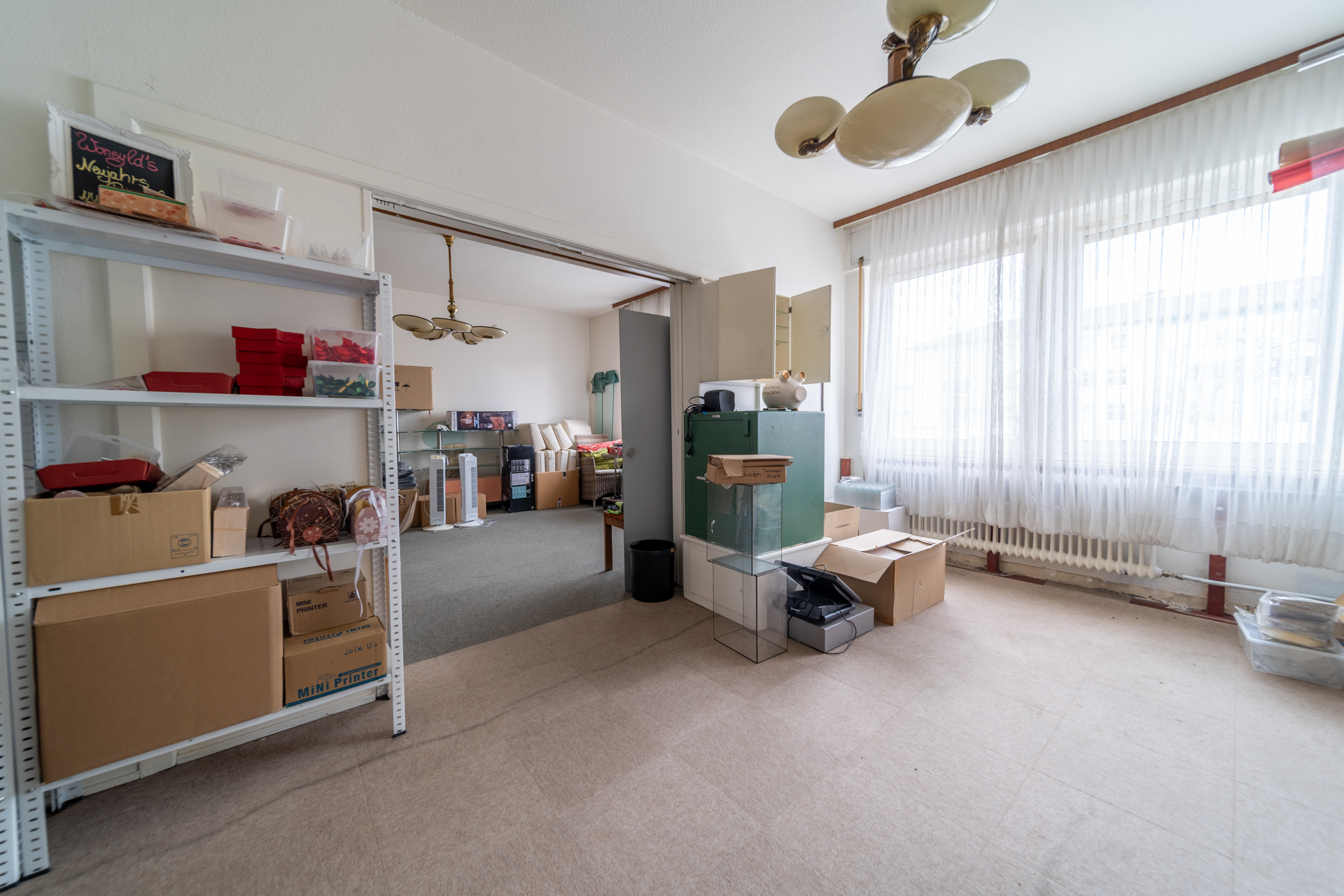 Das 1. Obergeschoss ist derzeit unvermietet und wird aktuell als Lagerfläche genutzt. Bei entsprechender Umnutzung bietet sich hier Potenzial für eine großzügige Wohneinheit, beispielsweise: